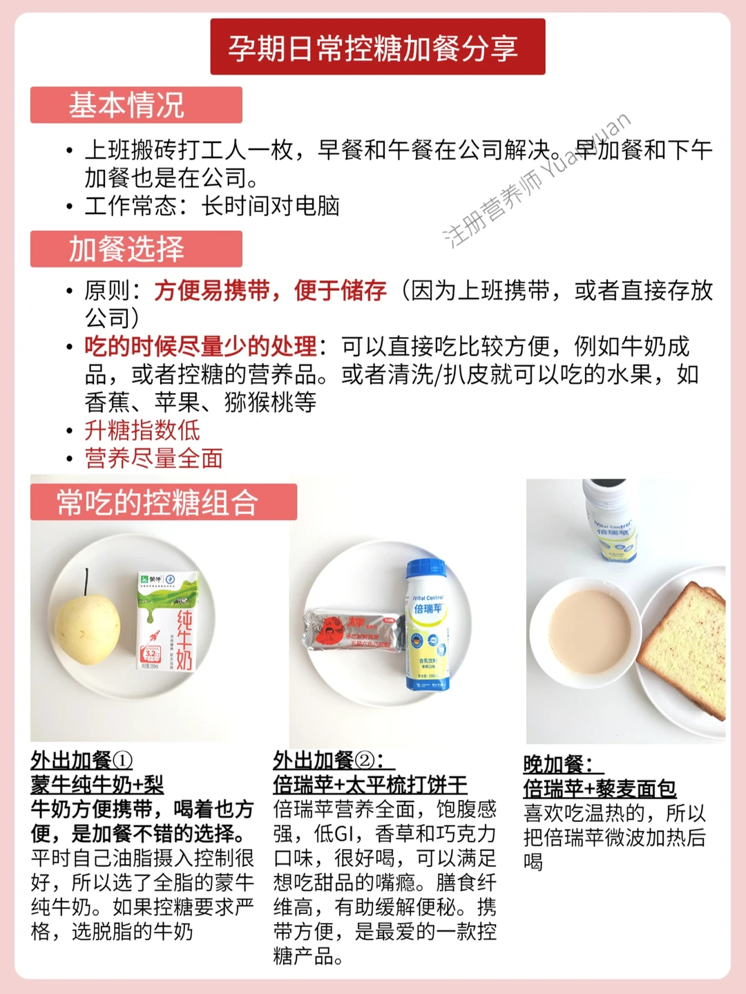 ⭐️我也是一枚搬砖打工人,怀孕时感觉最麻烦的就是日常加餐。因为早餐和午餐在公司解决。早加餐和下午加餐需要自己准备好在公司吃,所以,得要方便易携带,便于储存,吃的时候还不麻烦。更重要的是选低GI(低升糖)有营养,还有饱腹感的食物。