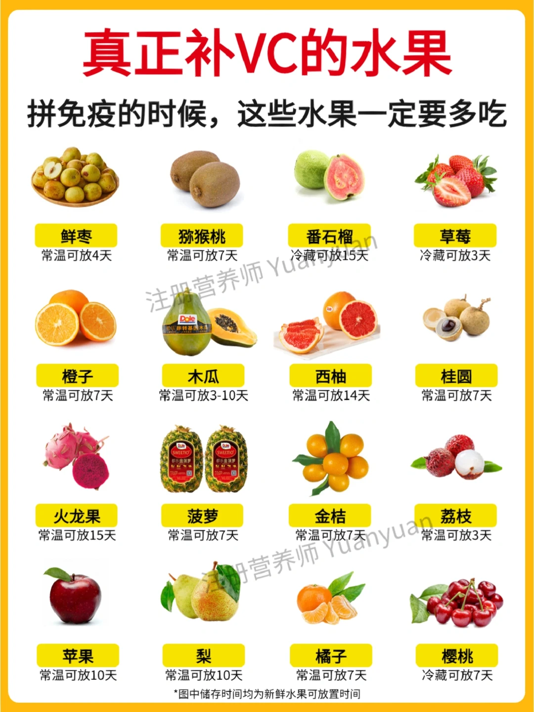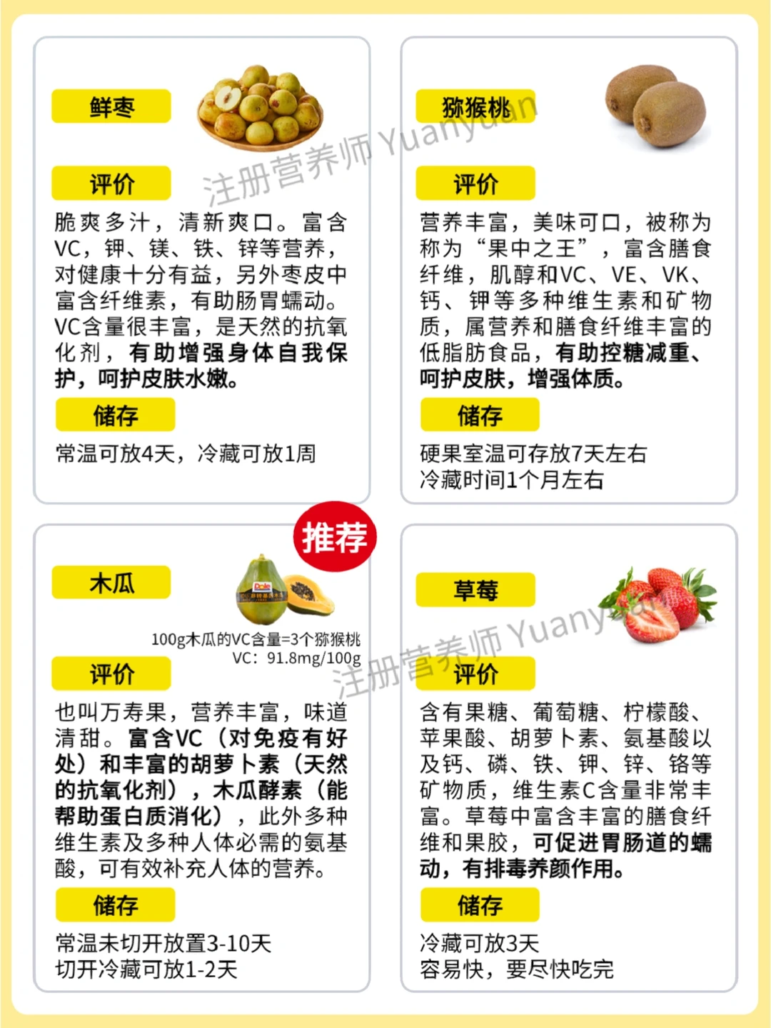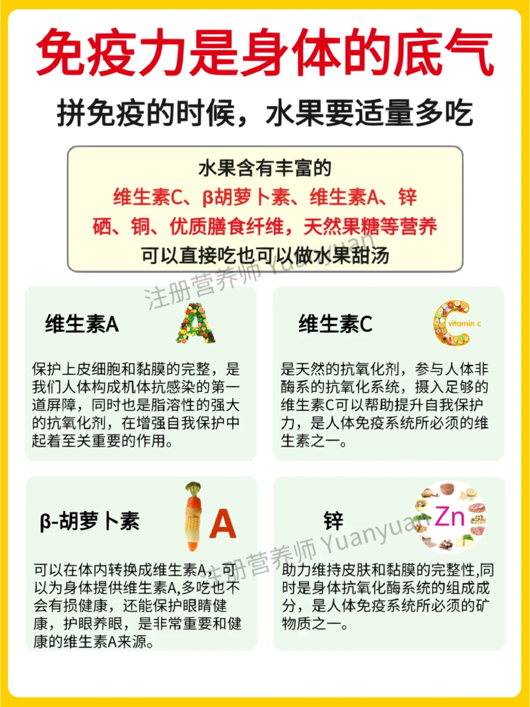 👉给大家整理好了富含VC、VA、锌、胡萝卜素的水果✨(图4), 大家要适量多吃~
