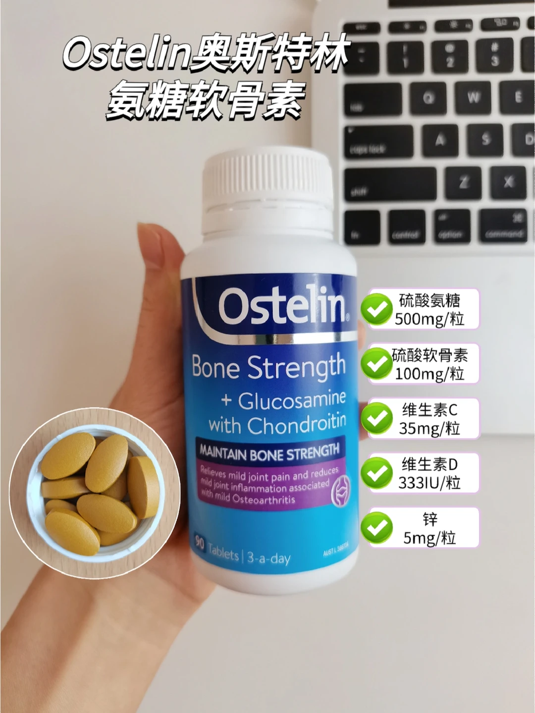 Ostelin奥斯特林是知名药企赛诺菲集团旗下的品牌,拥有99年专门研究分龄骨骼健康的历史,还拥有TGA+GMP的双重认证👍。我还入手同品牌氨糖软骨素,因为老公之前是运动员,关节有磨损,站久了就会膝盖不舒服,它每一粒含有500mg氨糖和100mg硫酸软骨素,可以减少关节之间的相互摩擦。还额外添加了5mg 锌、35mg VC和333mg VD3,很适合搭配钙片进行日常补充。