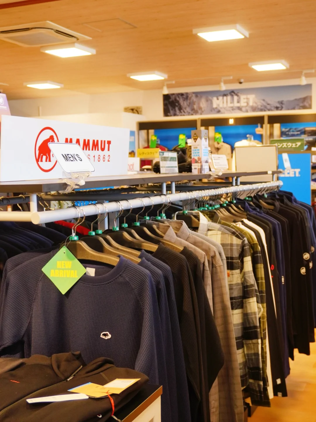好日山庄是一家很综合的店,户外服饰有MAMMUT、Columbia、MountainHardwear,也有很多滑雪、攀岩装备。
