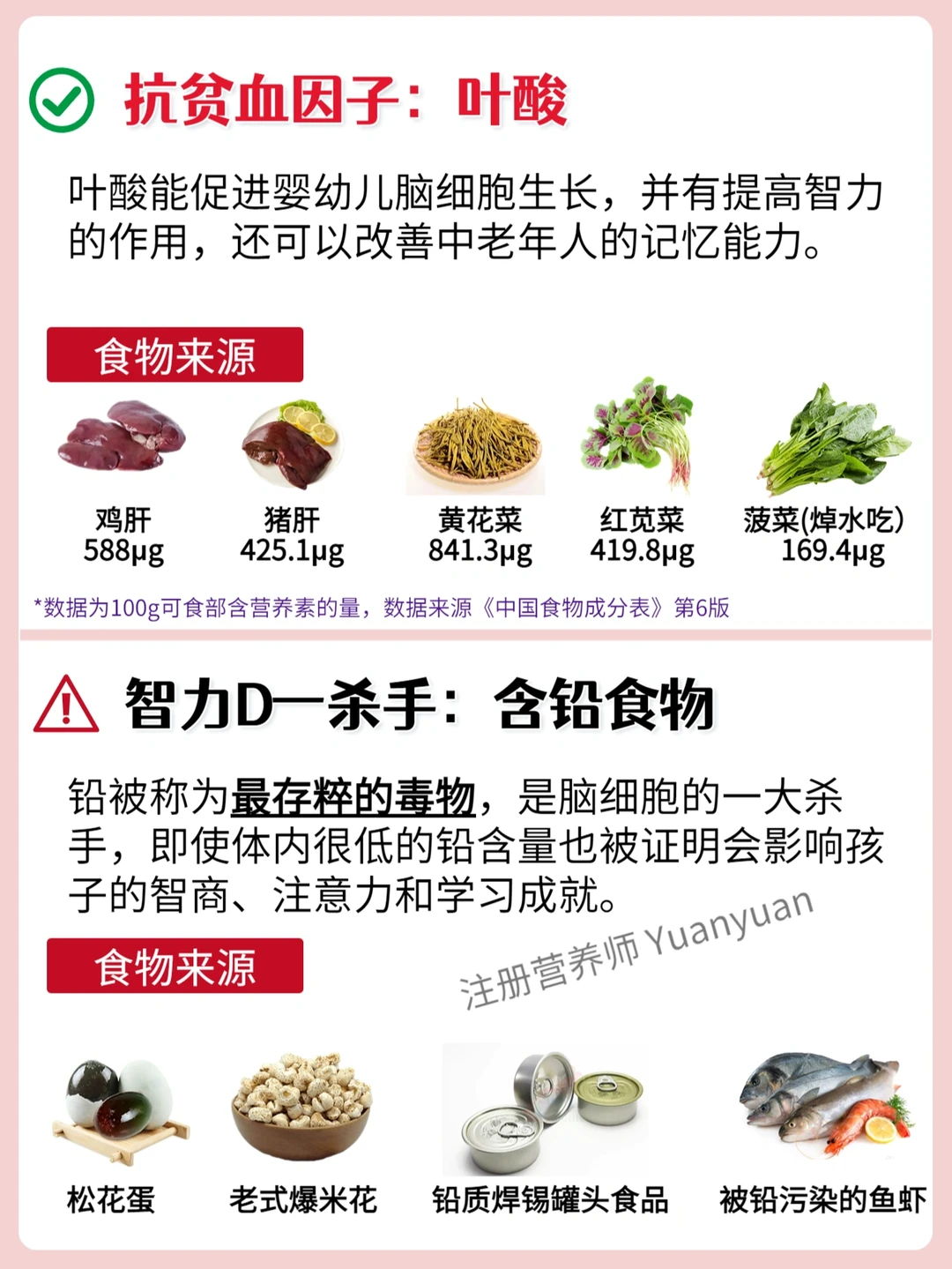 🔺智力Di一杀手:含铅食物。食物来源:松花蛋、老式爆米花、铅质焊锡罐头、被铅污染的鱼、 虾。