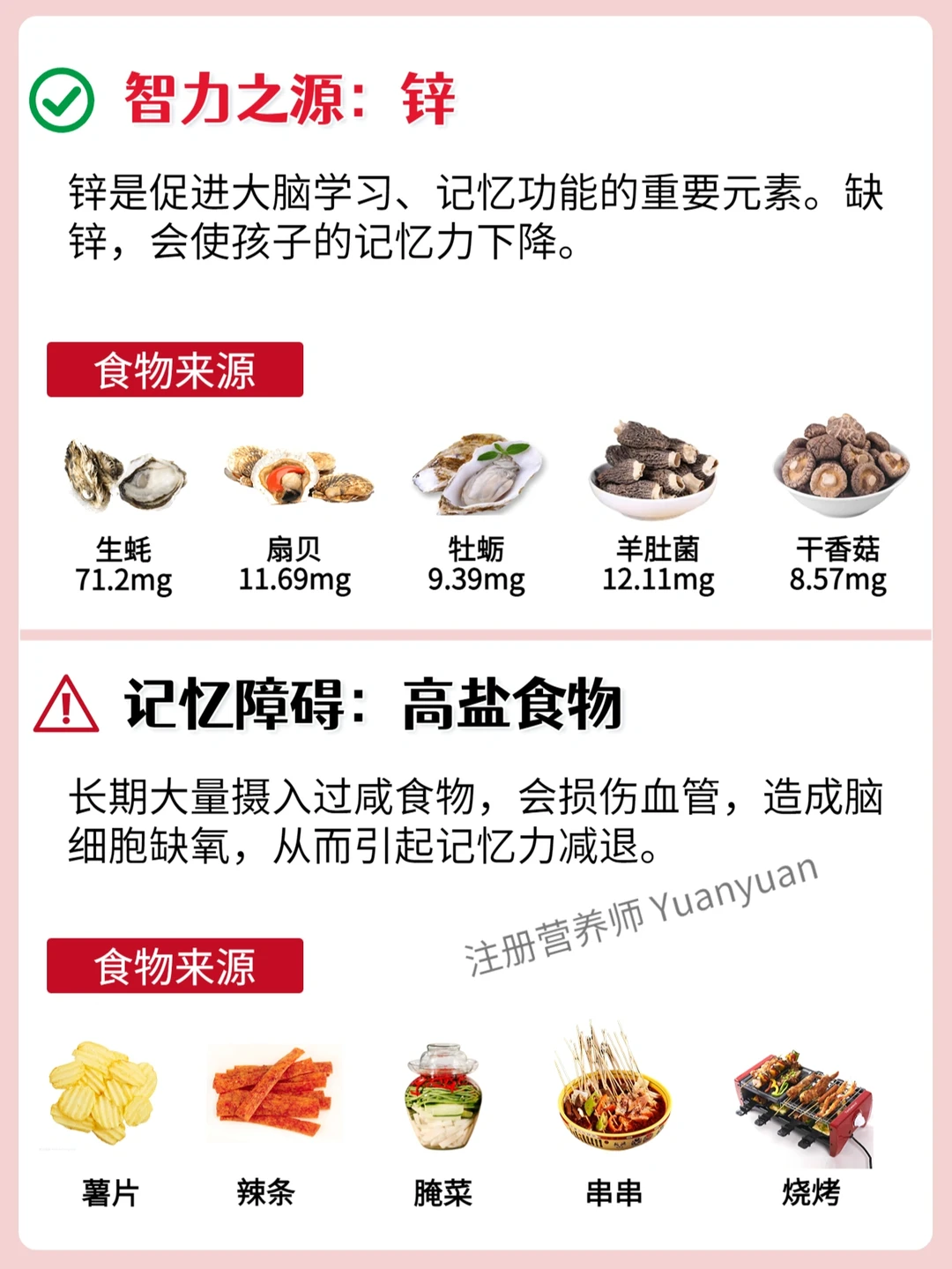 🔺记忆障碍:高盐食物。食物来源:辣条、薯片、方便面。