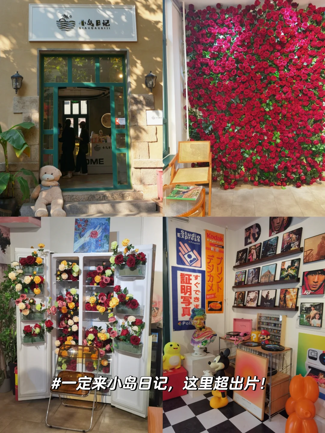 ❺小岛日记:必打卡青岛最美套色印章❗️5个套章,11个小章,免费❗️出地铁口左手边胡同里~进门一整面墙的“星空”,玫瑰墙,是集绘画,咖啡,撸猫,拍立得为一体的网红店~图13-14