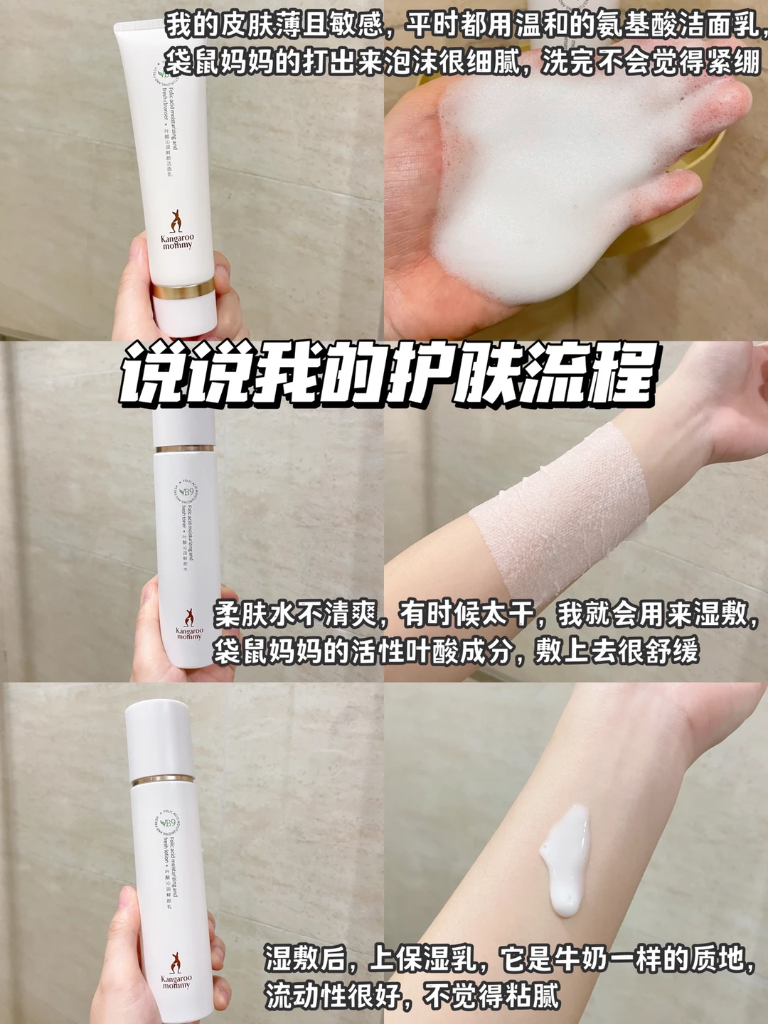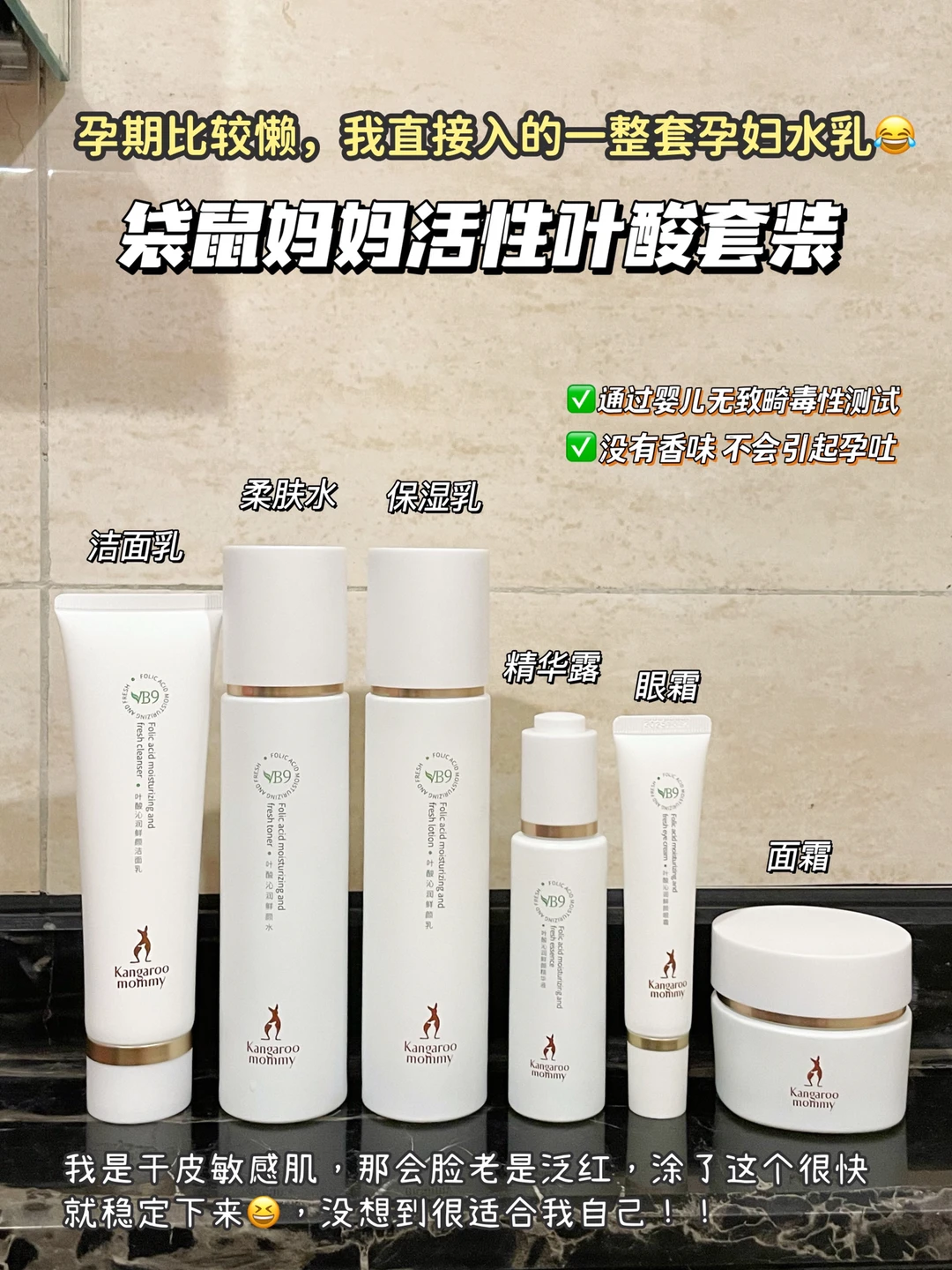 🔹不知道用什么护肤品的准妈妈,也可以试试这个,我是干敏皮,你们可以参考下。另外,袋鼠妈妈的这个套装是通过婴儿无致畸毒性测试的,没有对宝宝有害的成分,用起来我也是放心的。