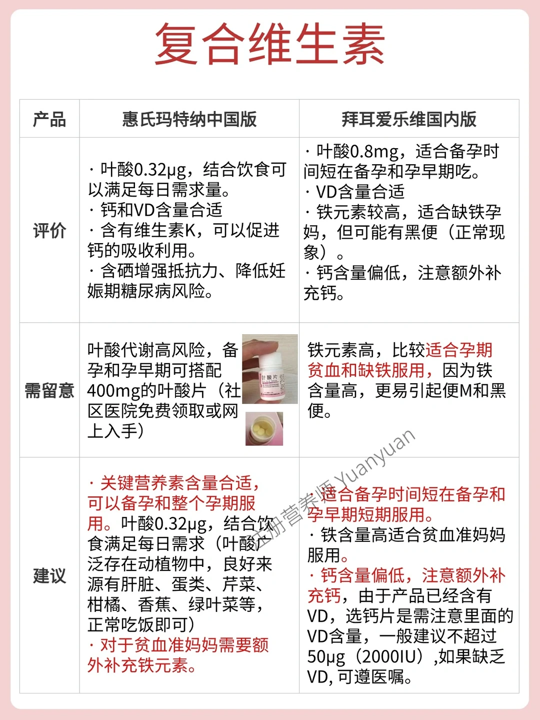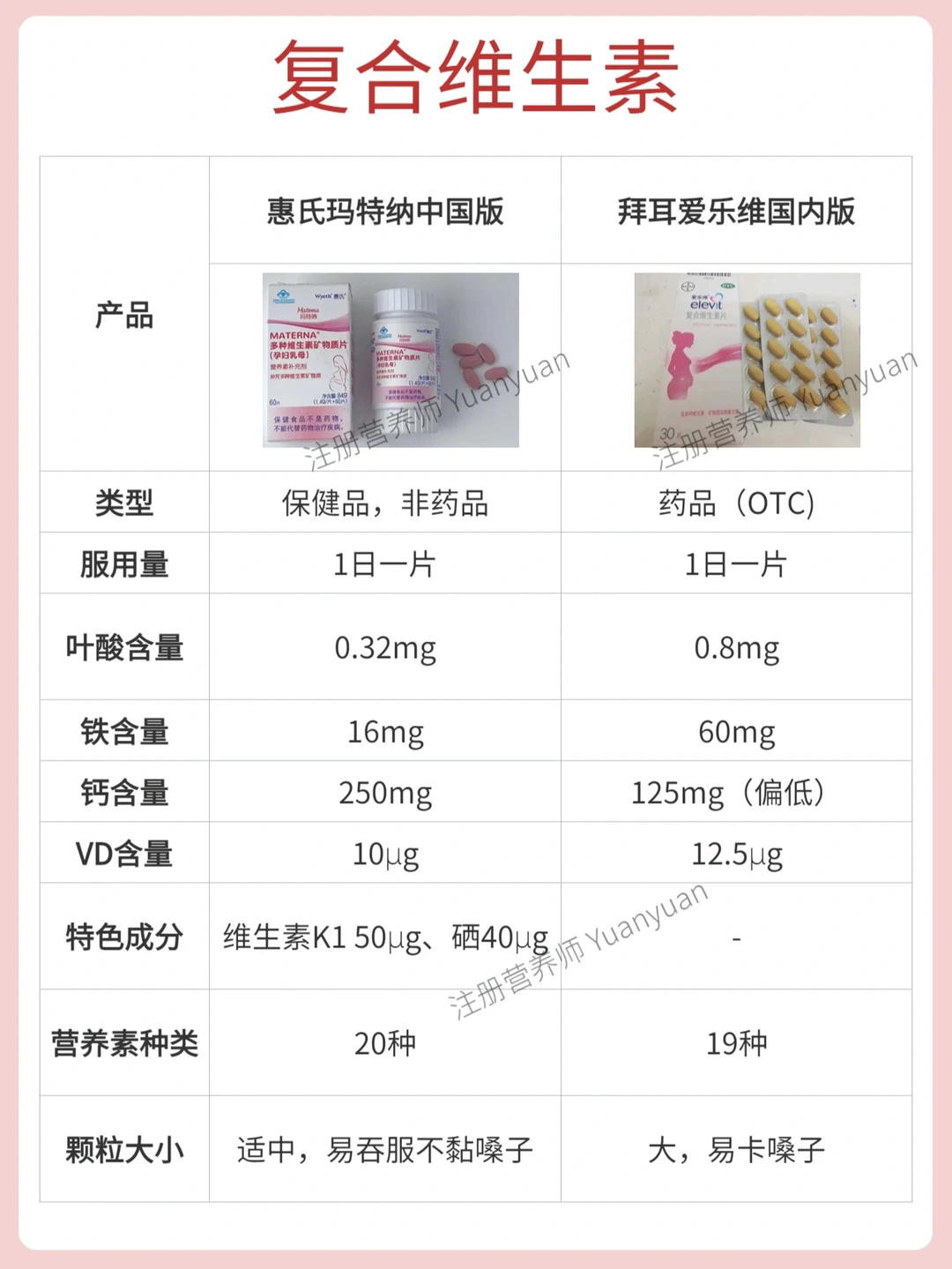 🔺复合维生素:惠氏玛特纳中国版、拜耳爱乐维国内版
