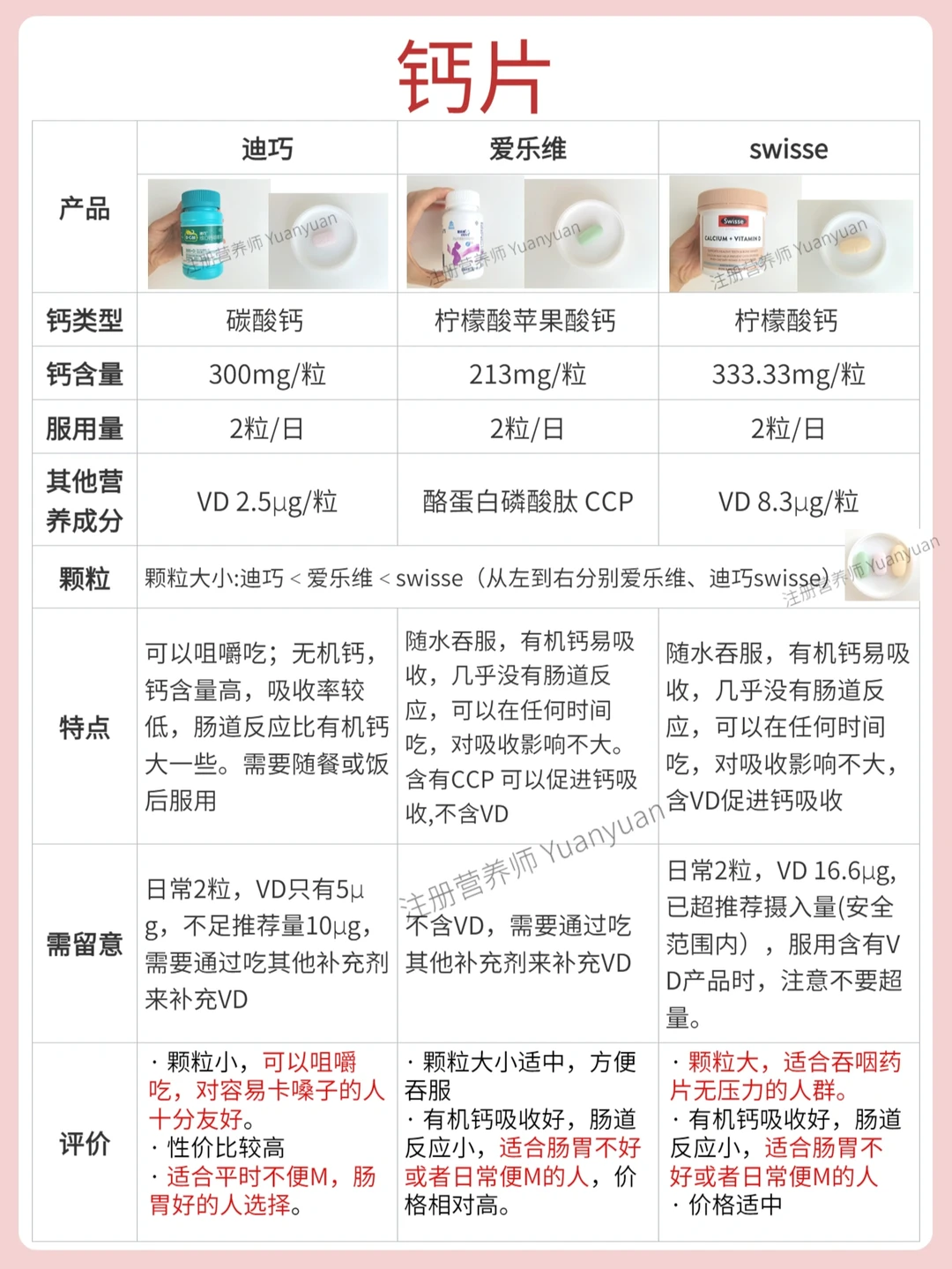 🔺钙片:迪巧维D钙咀嚼片、爱乐维柠檬酸苹果酸钙片、Swisse 柠檬酸钙