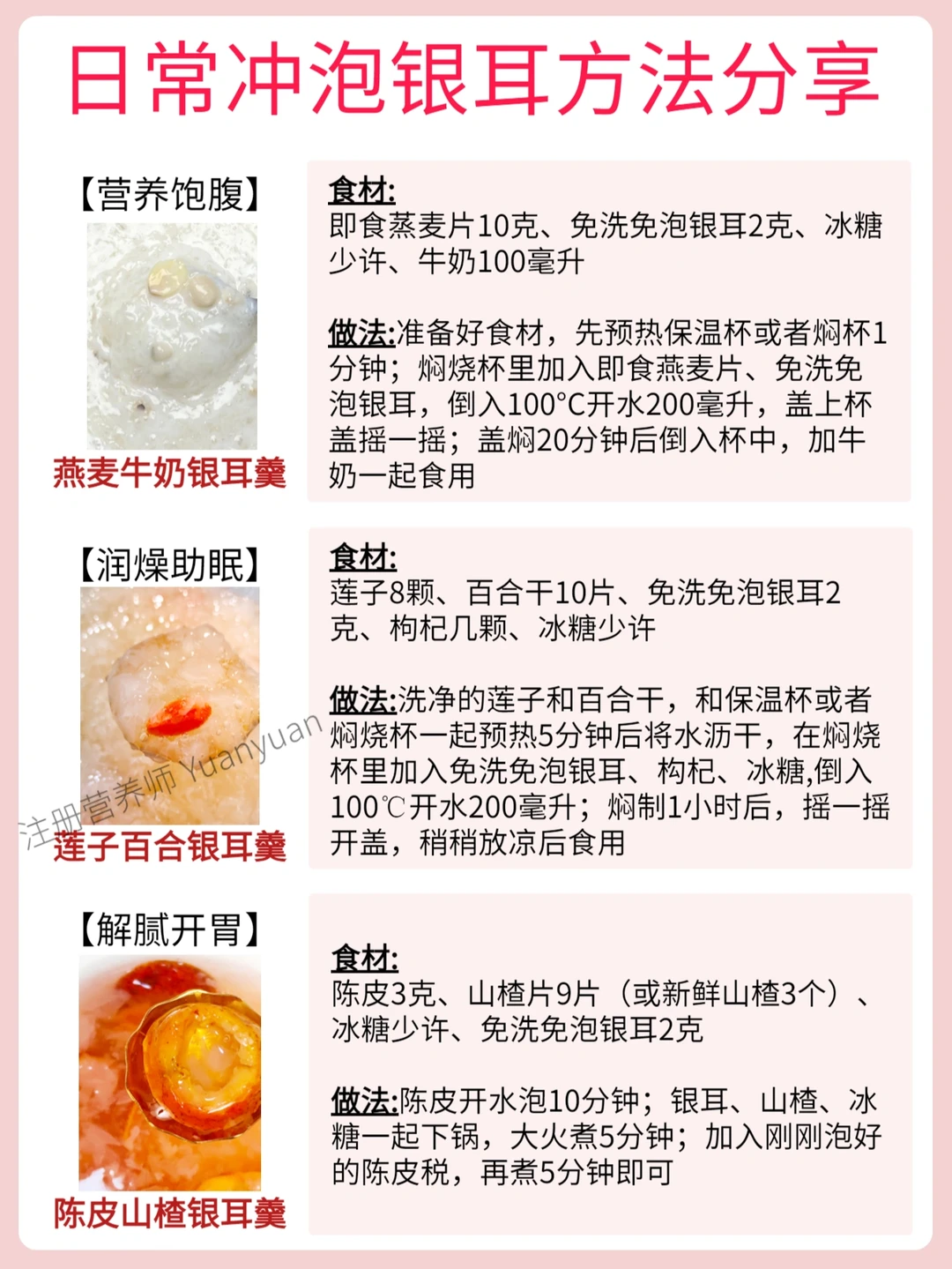 👉在笔记里也分享了银耳养生搭配组合(图1),自己日常银耳冲泡方法(图8-9),大家可以按照自己情况选择喜欢的组合。