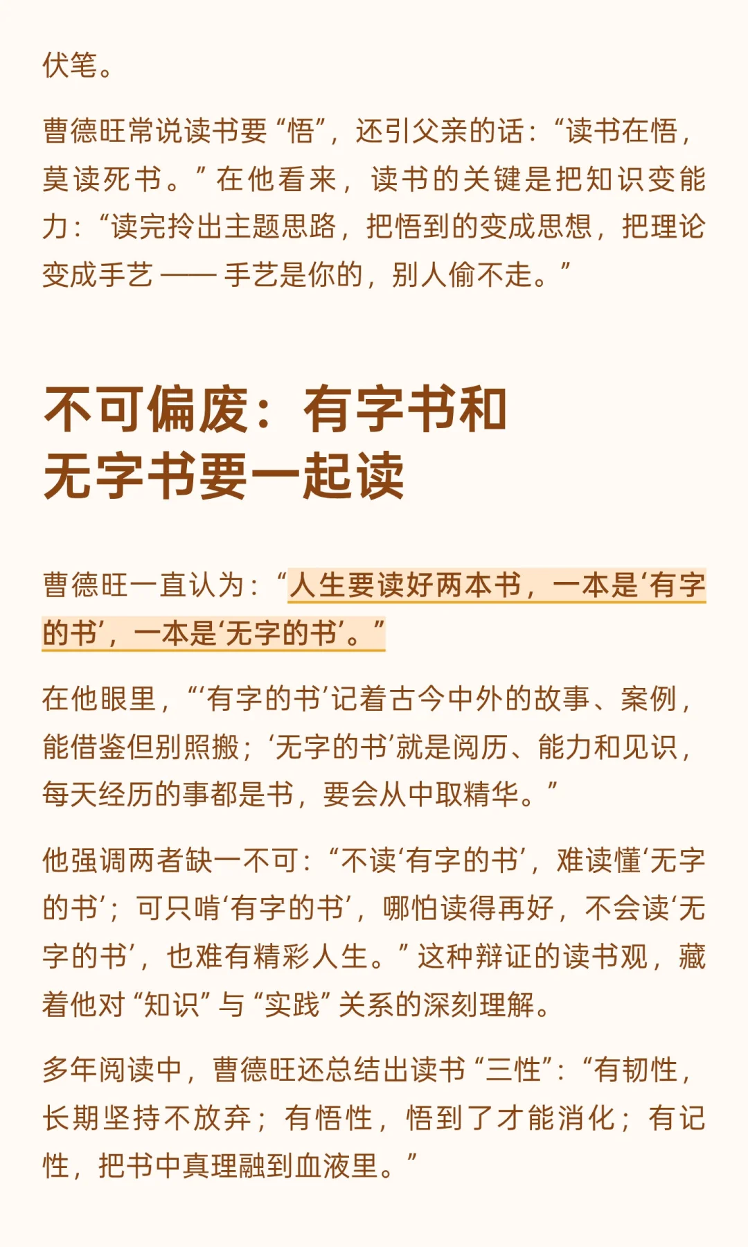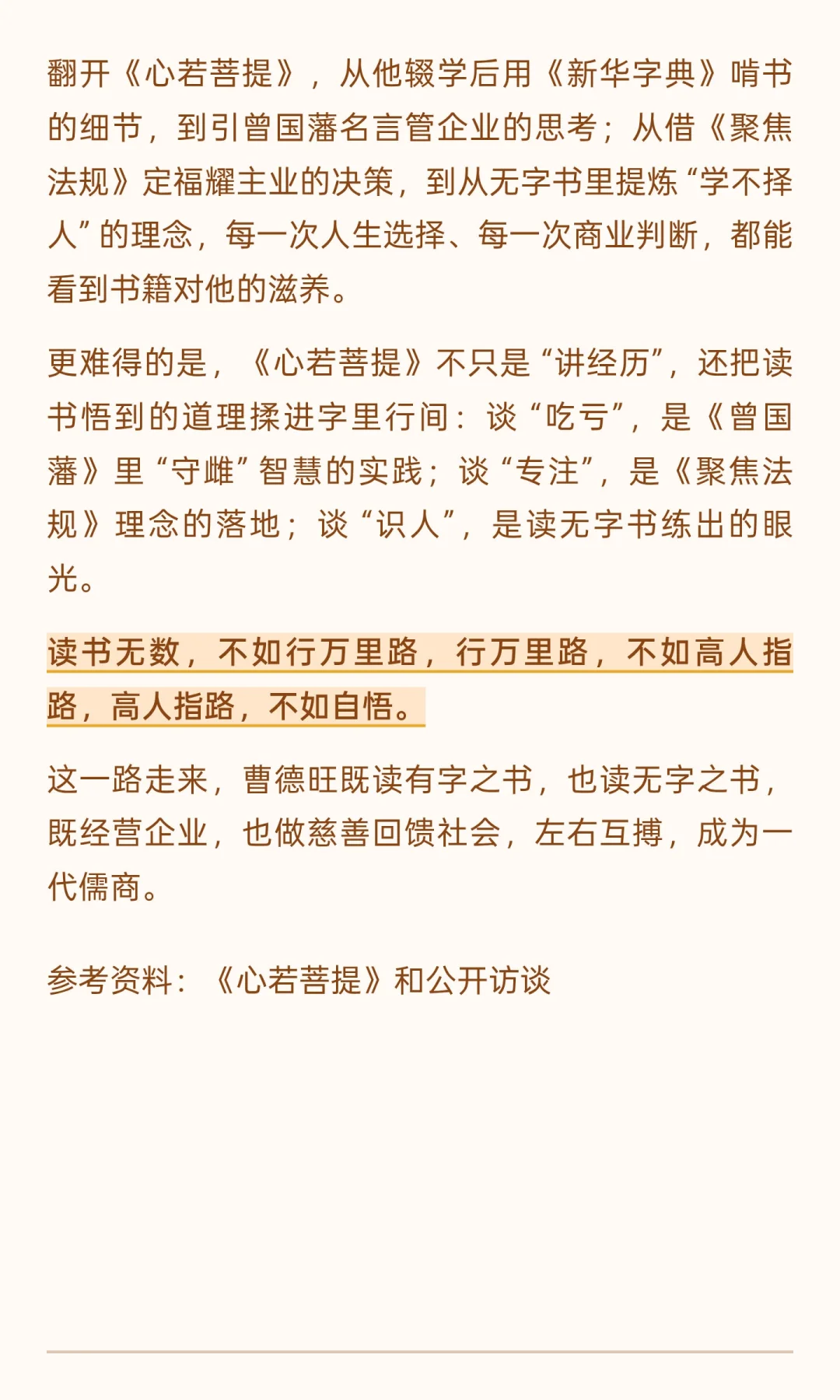 曹德旺一直认为:“人生要读好两本书,一本是‘有字的书’,一本是‘无字的书’。”