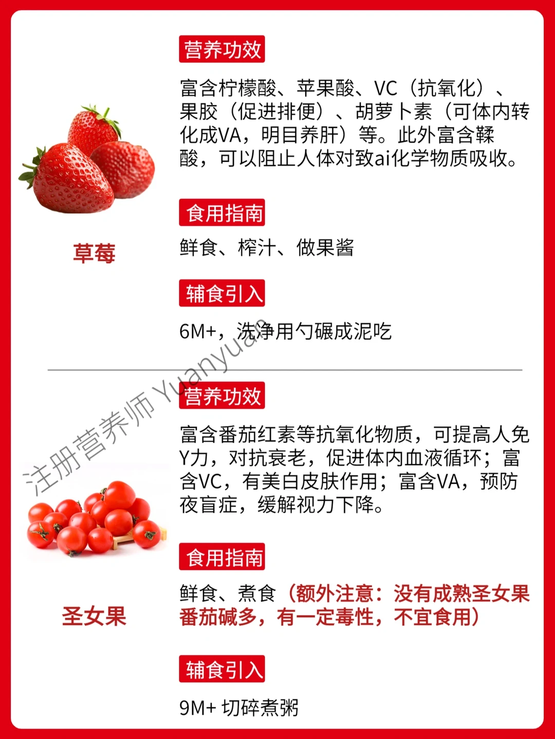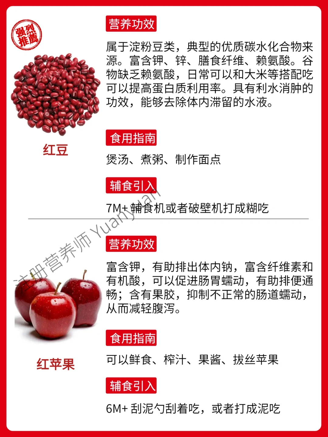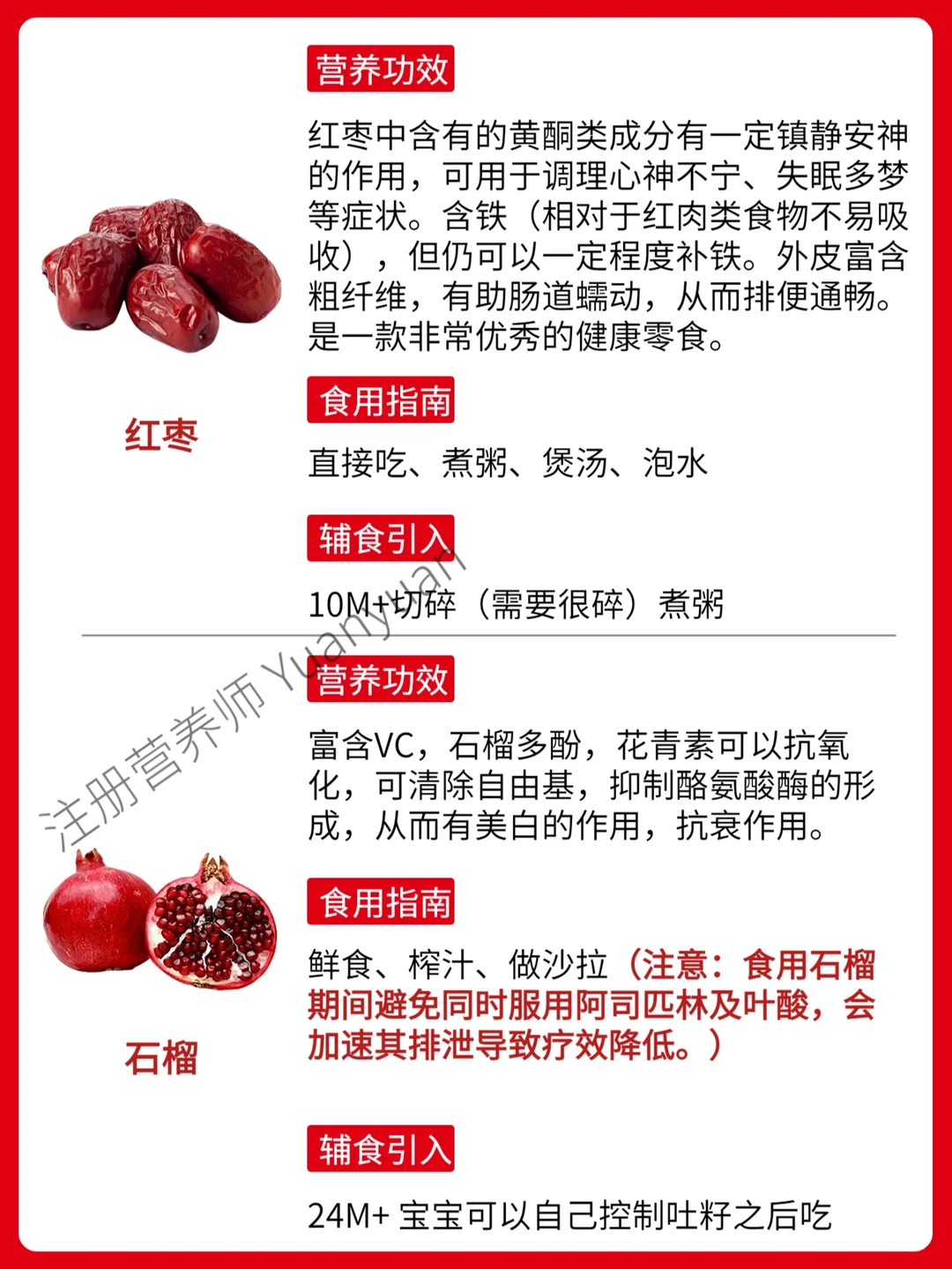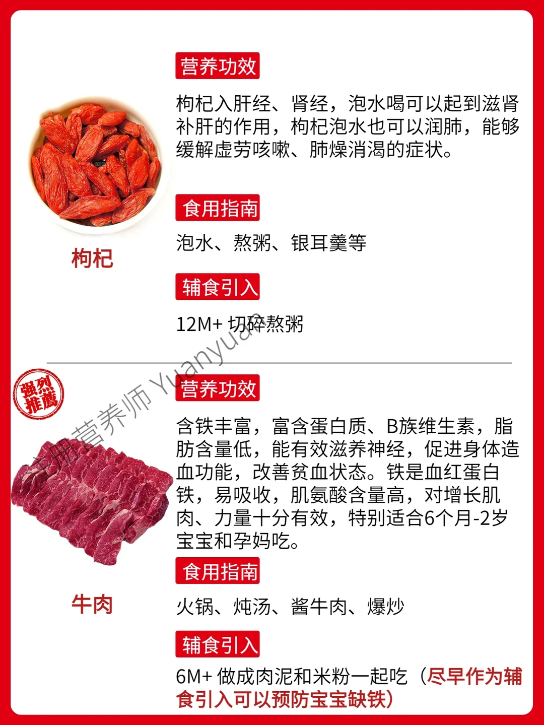 👉笔记中“辅食引入”M 指月龄,比如“6M+”指6月龄以上可以引入该食物。
