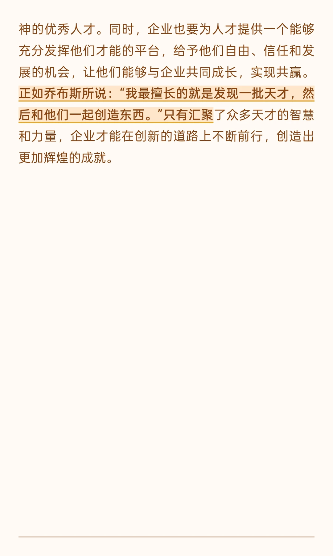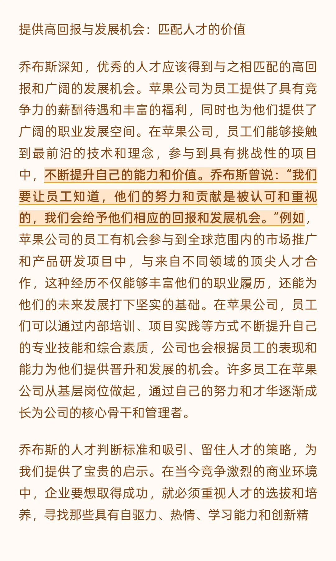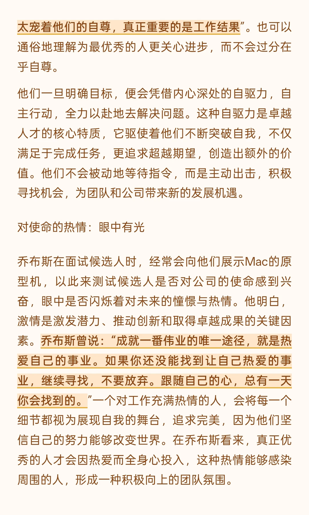 乔布斯认为顶尖人才具备自驱力、对使命的热情、持续学习能力、从失败中崛起的勇气、敢于争论与独立思考、追求极致、化繁为简、对细节执着、追求卓越的态度。