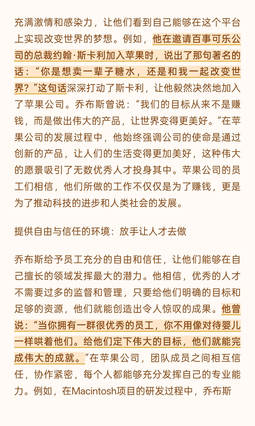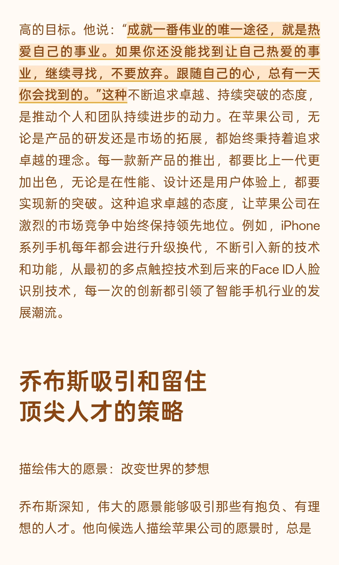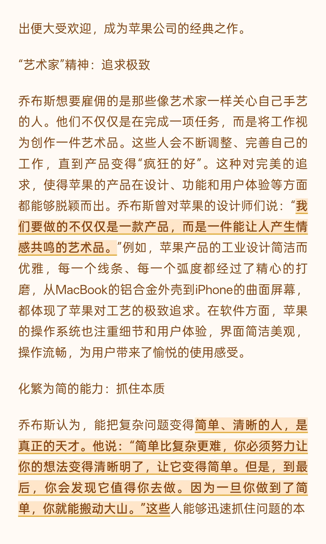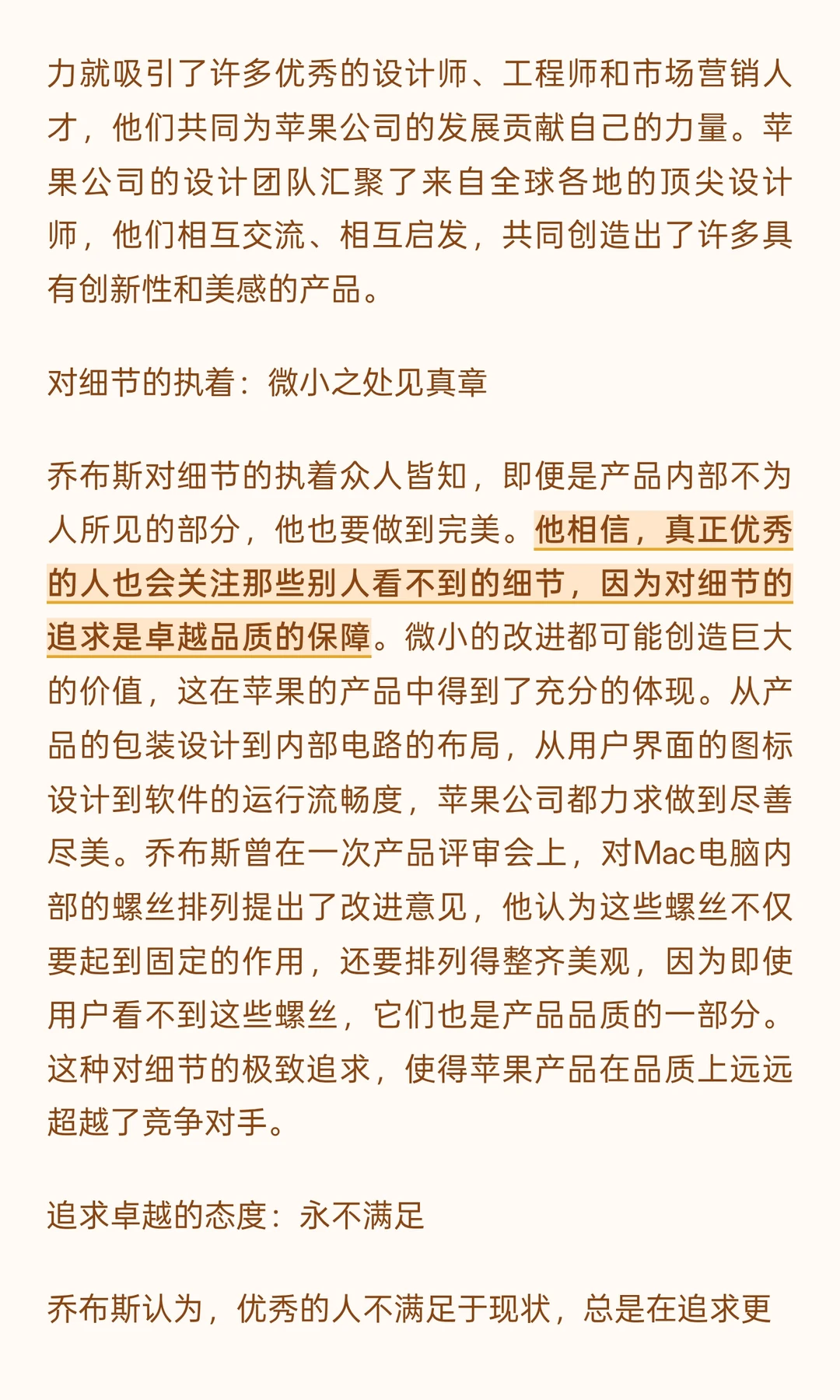 他还说,“简单比复杂更难,你必须努力让你的想法变得清晰明了,让它变得简单。但是,到最后,你会发现它值得你去做。因为一旦你做到了简单,你就能搬动大山。”