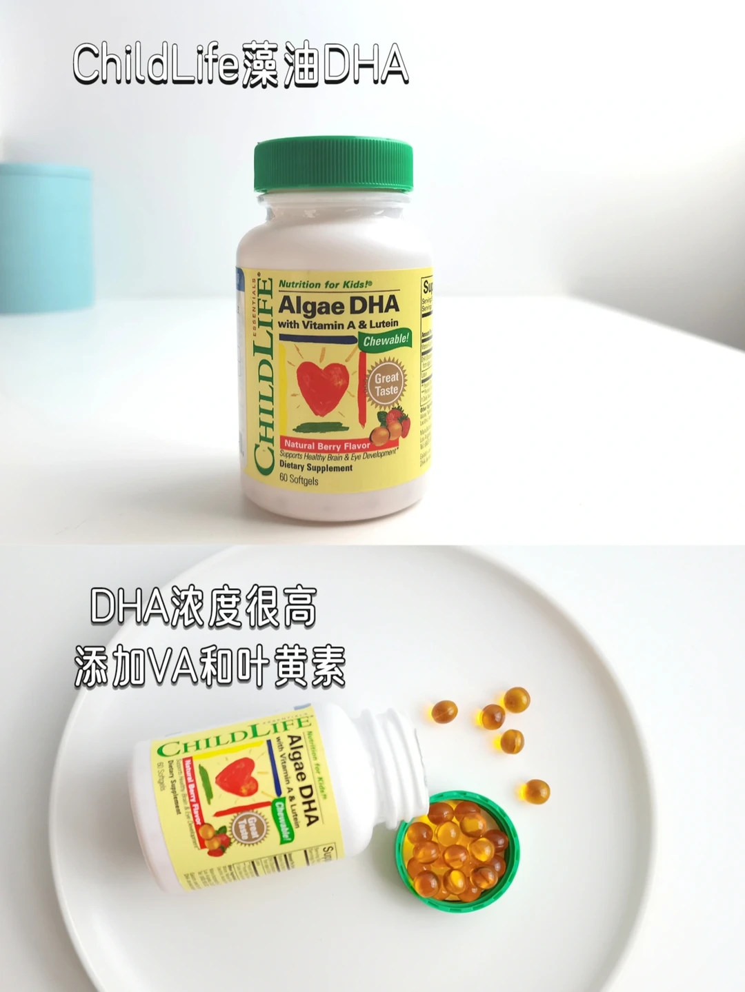 🔺因为我家不怎么吃鱼,不能保证DHA的摄入量,所以在宝宝6个月添加辅食后,就吃上了DHA补充剂,目前宝宝吃的是ChildLife藻油DHA,有着25年的大品牌,质量有保障,原料用的是加拿大芬迪湾裂壶藻,DHA浓度也很高,每颗含100mg DHA。而且里面额外添加了叶黄素和维生素A,对眼睛和视力有好处。