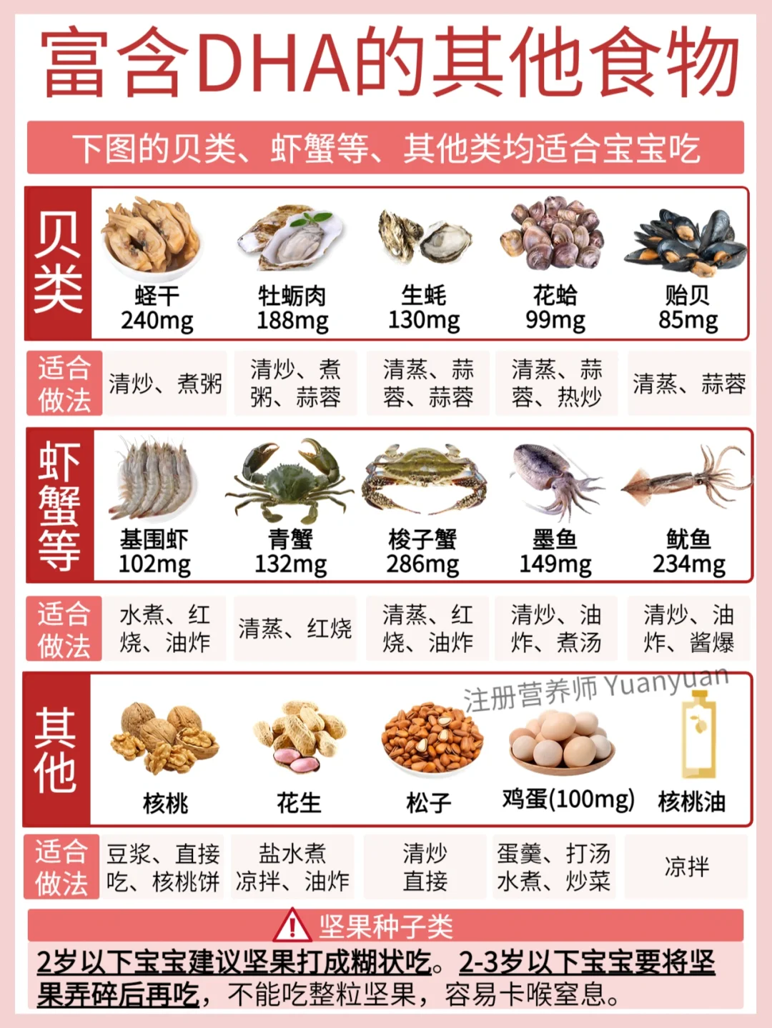 ⭐️总之,DHA对宝宝很重要,无论是饮食还是补充剂,一定要每日摄入足够量。