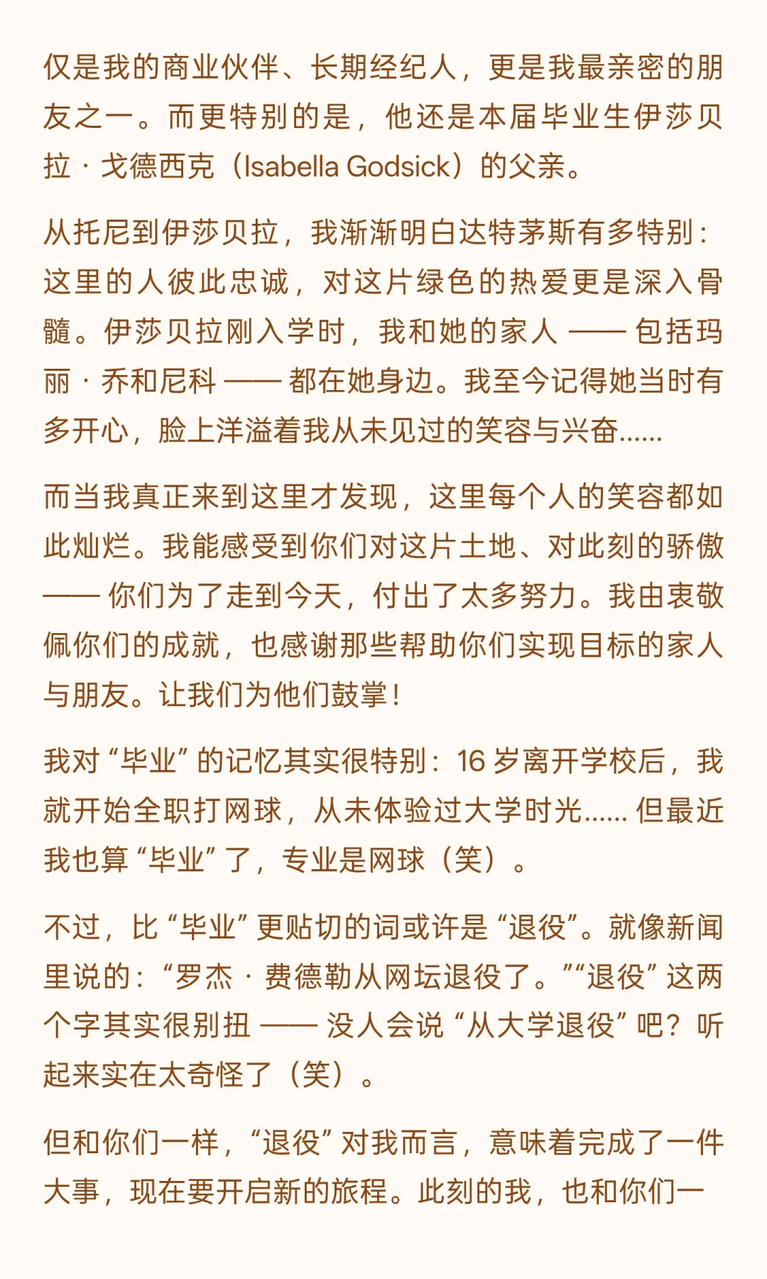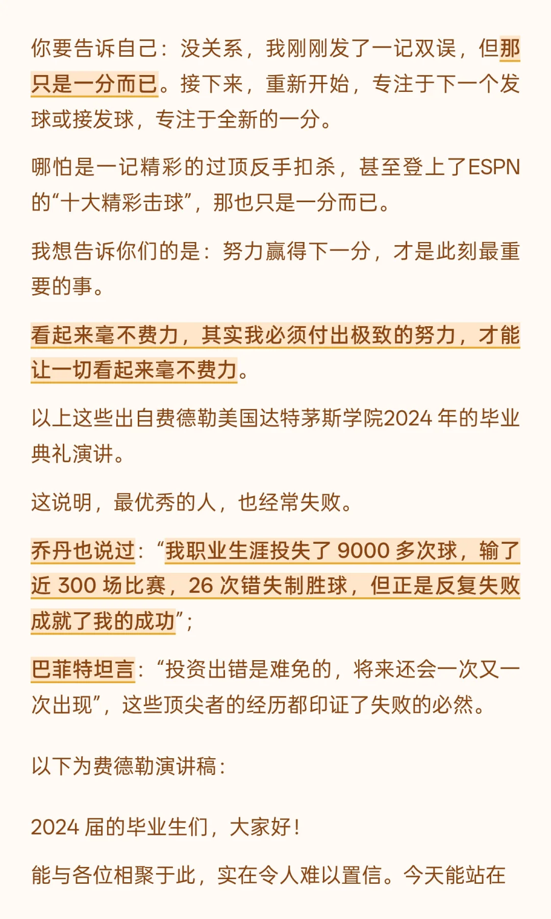 费德勒于达特茅斯学院的这场毕业典礼演讲,堪称 “运动员视角下的人生教科书”。