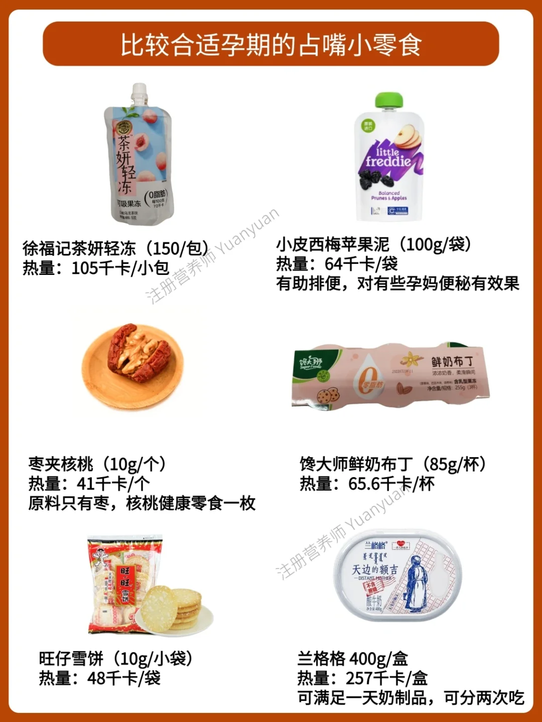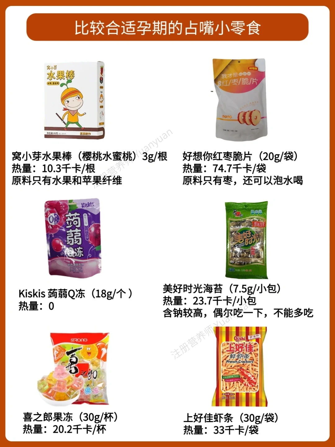 挑选了几种从能量、含糖量、钠含量等相对来说较为适合孕期吃的零食~