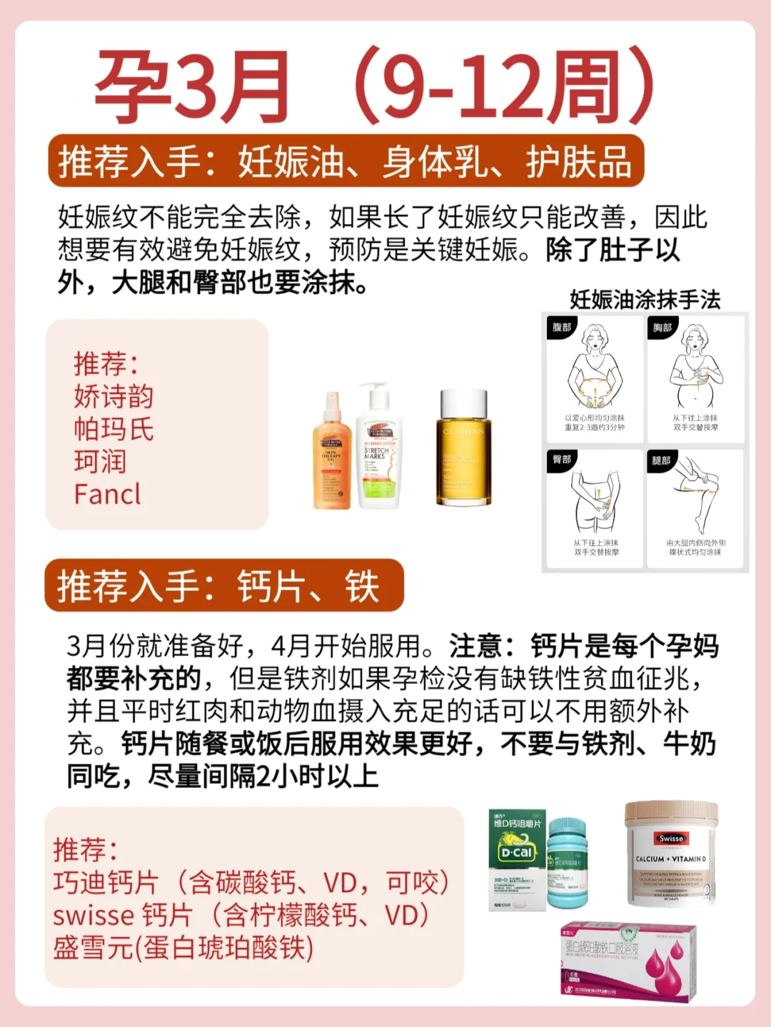 🟠孕3月:护肤品、妊娠油、钙片、铁剂(不缺铁可不买)