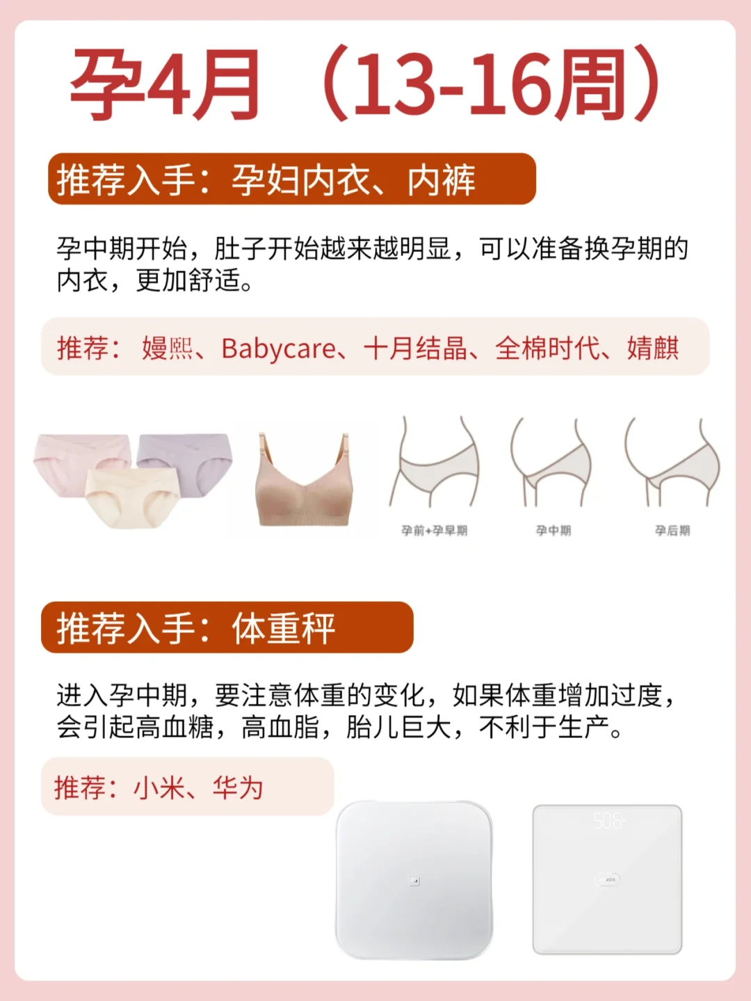🟡孕4月:孕妇内衣、内裤、体重秤(每次产检都要填体重,在家称好可节省时间,并且,每次相同时间称准确性也高)