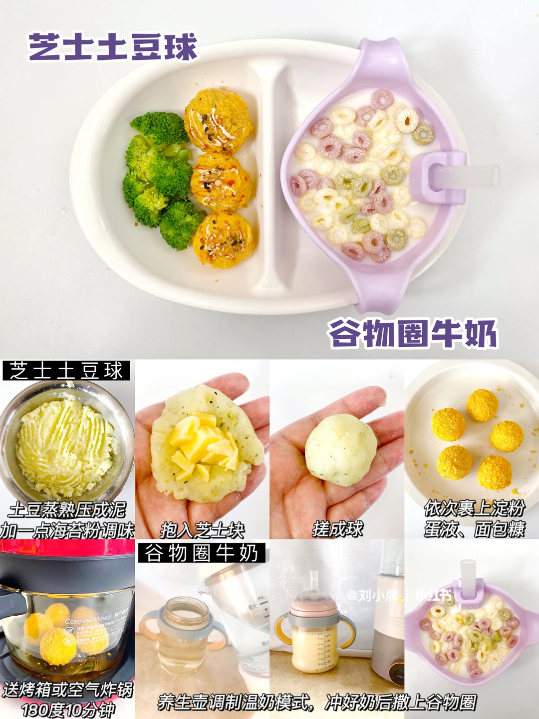 💜芝士土豆球+谷物圈牛奶