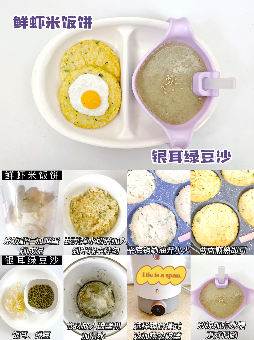 🧡鲜虾米饭饼+银耳绿豆沙