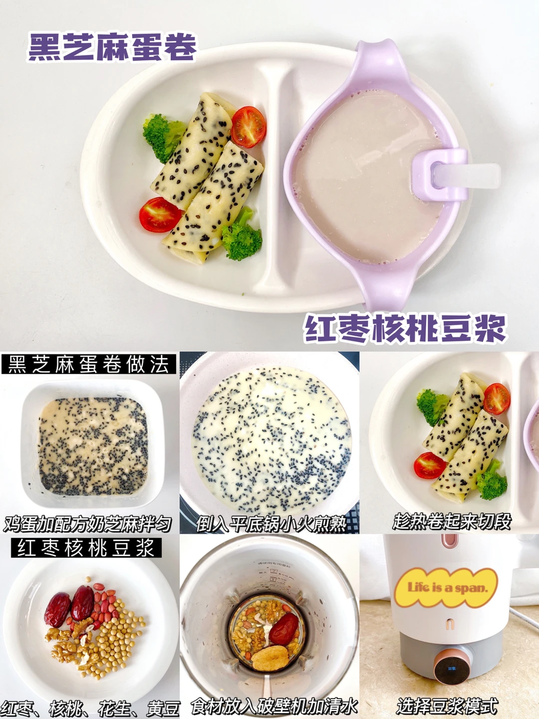 🖤黑芝麻蛋卷+红枣核桃豆浆