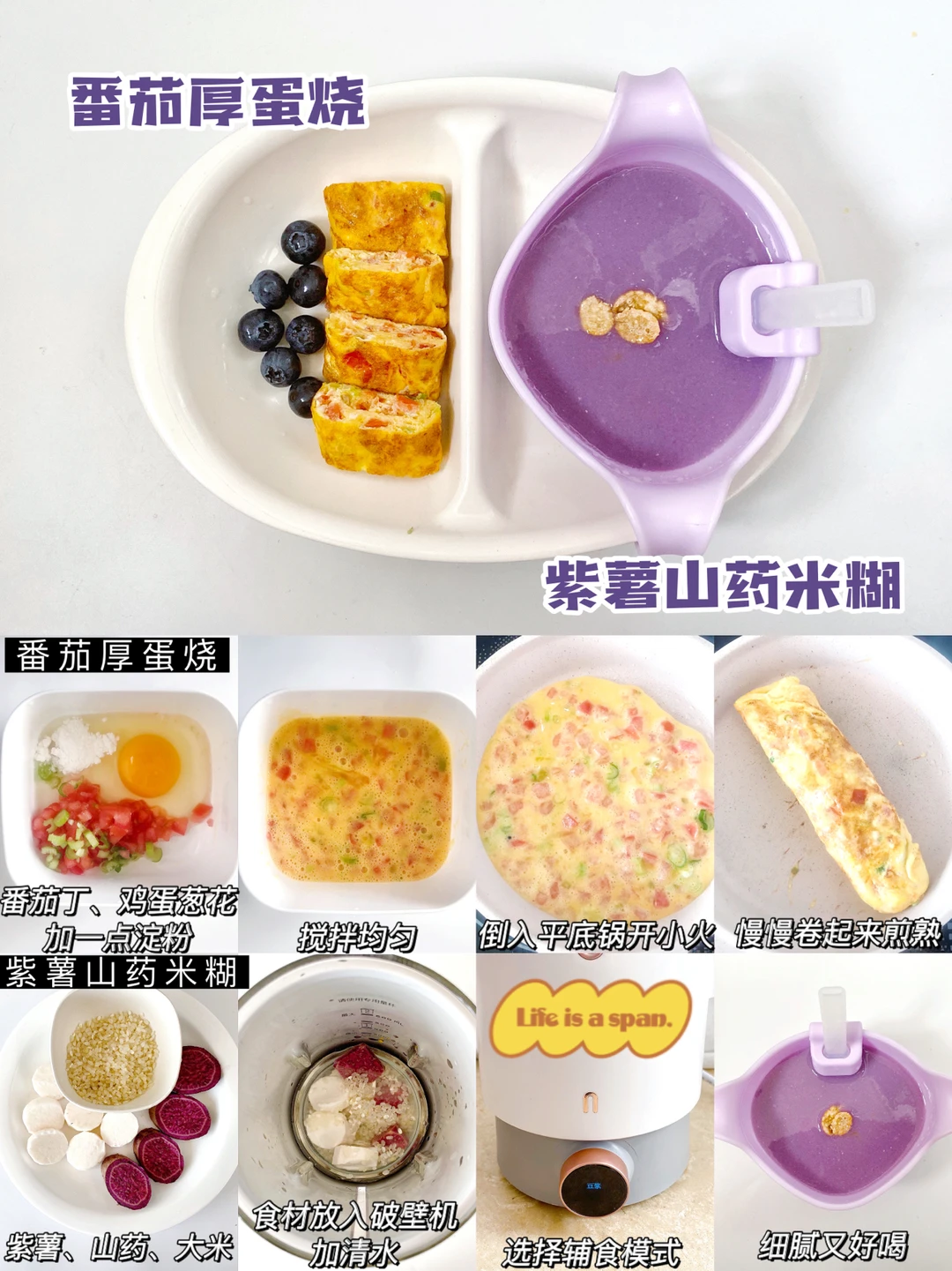❤️番茄厚蛋烧+紫薯山药米糊