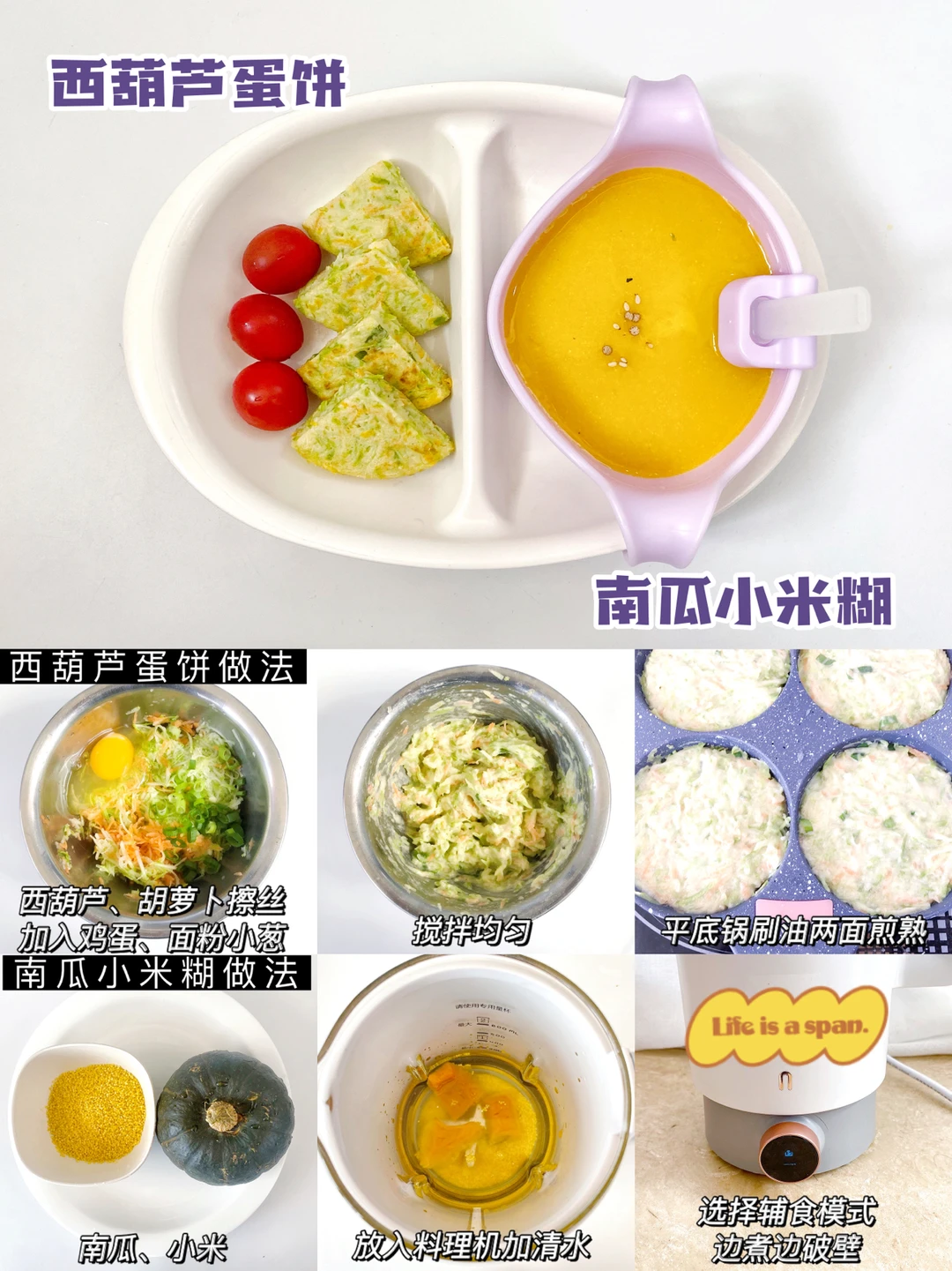 💚西葫芦蛋饼+南瓜小米糊