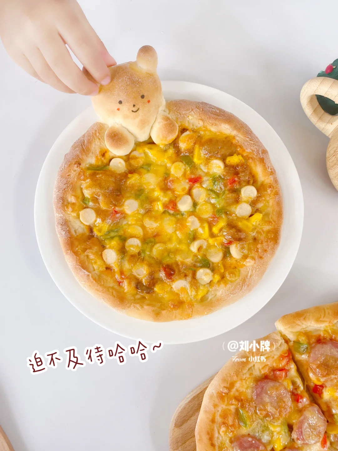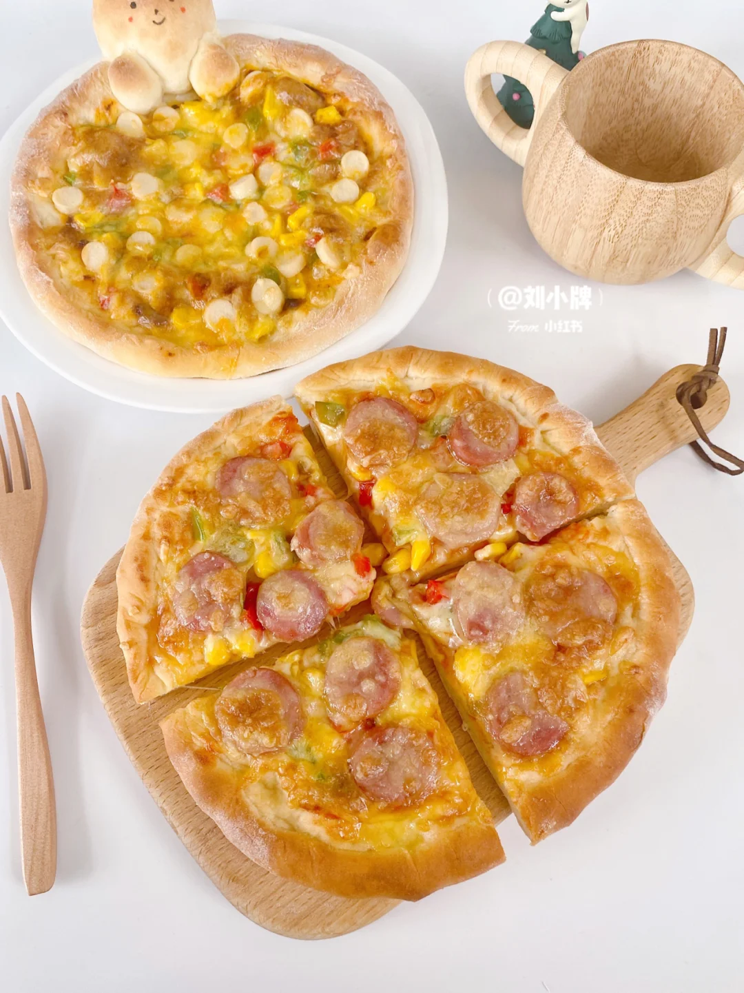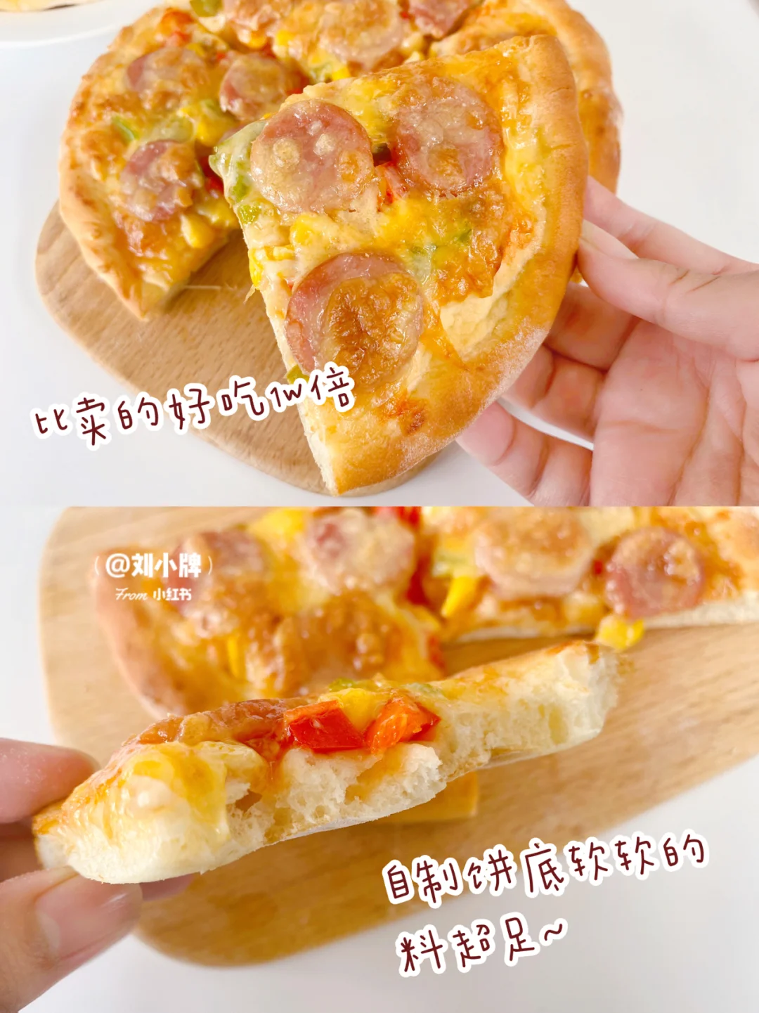 这个饼底的配方做出来的口感松软,味道也是正八经披萨的口味