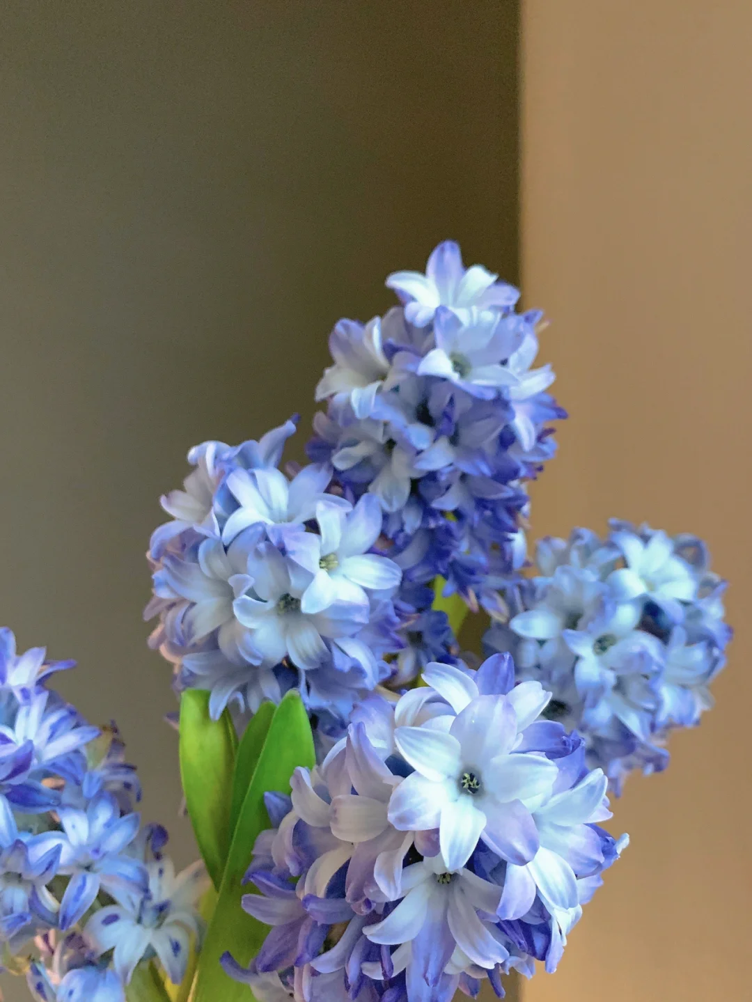 🔵⚪️搭配:风信子可搭配现代风、国潮风等风格花束,其特别的形态和硕大的花头能够增添花束的层次和韵律,让花束显得更加高级;在插花中常作为主体呈现,一枝独秀,配以一些碎花小草,给人一种生机活泼的感觉。