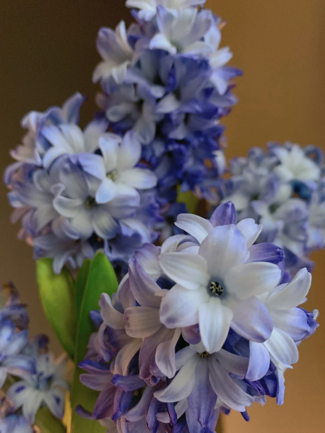🔵⚪️特点:风信子是经研究发现会开花的植物中最香的一种花卉,草本球根类植物,其花数量众多,体势粗壮,花头硕大,很惹人喜爱的一种花。