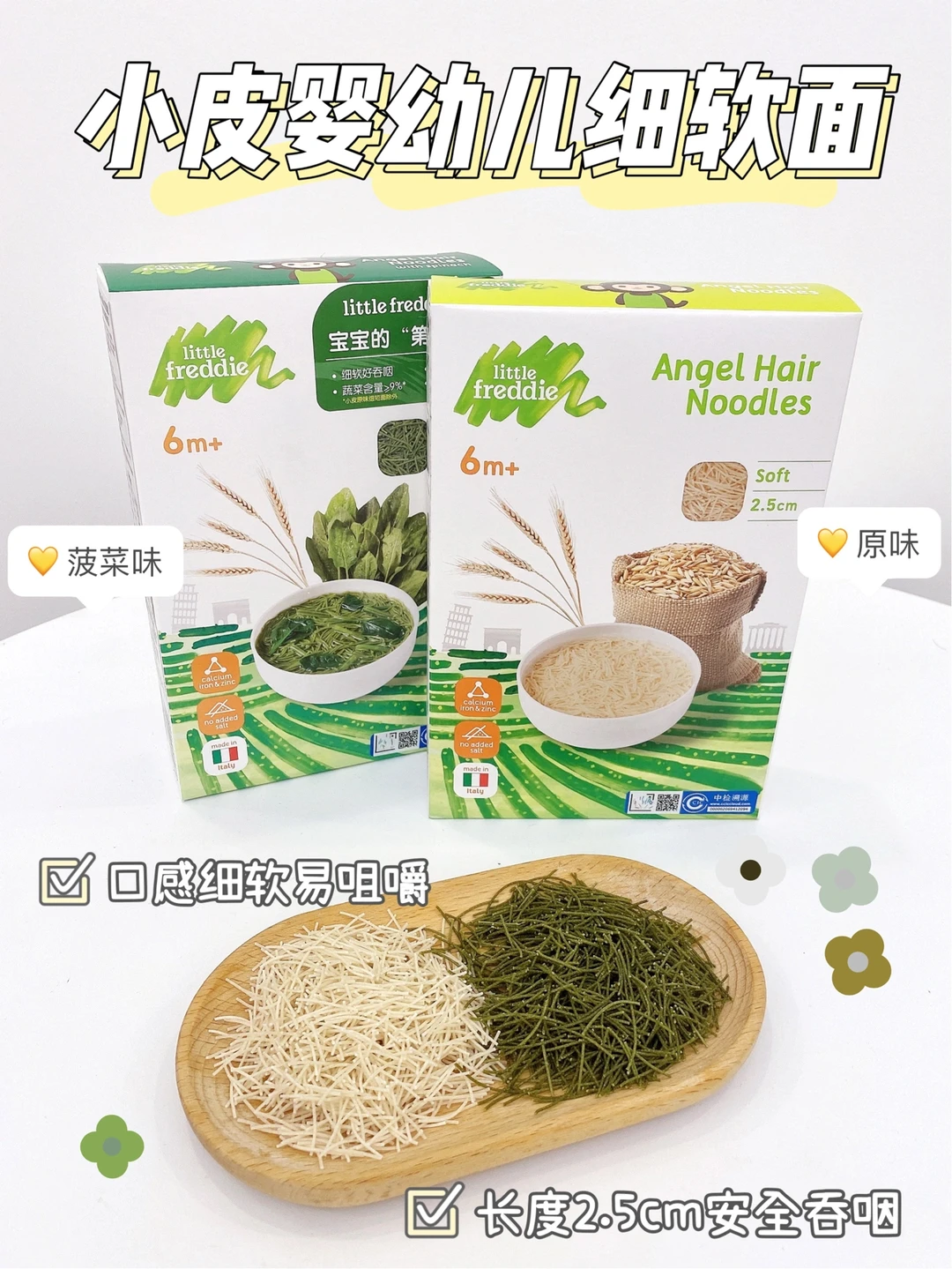 💚这种丸子不仅味道好,口感丰富,又可以直接作为主食,属于快手辅食啦。💚宝宝面条推荐用小皮婴幼儿细软面,也是赞赞从小就在吃的宝宝辅食面条,这款面条很好煮,2分钟就煮熟了,口感细软好嚼。💚面条的长度只有2.5厘米,一口可以吞咽,适合作为宝宝的第一口面条。💚同时我还囤着了菠菜口味,他家的蔬菜口味面条中的蔬菜含量很高,是其他面条的3-4倍,不爱吃菜的宝宝吃这个正合适了。💚添加钙铁锌多种营养元素,不含防腐剂添加剂,宝宝吃得更安心。