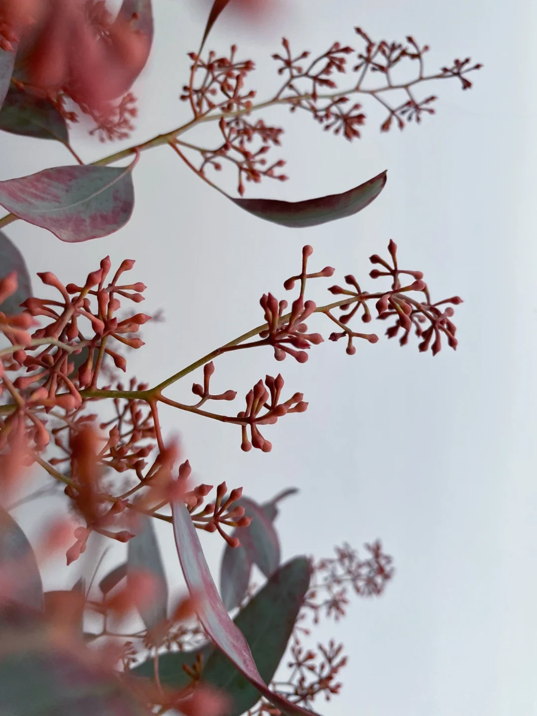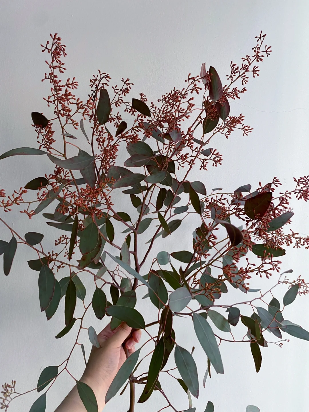 尤加利是近几年来比较流行的花材,因为它霜蓝色的叶片,自带清冷感和感觉感,收到ins上大家的欢迎,一度成为网红花材。它的品种多样,分为很多种叶型:串叶、心型、苹果型、细叶等,几乎占据花艺界叶材的半壁江山。现在推出了吸染的颜色,更适合秋冬季节,有一些复古感在里面。