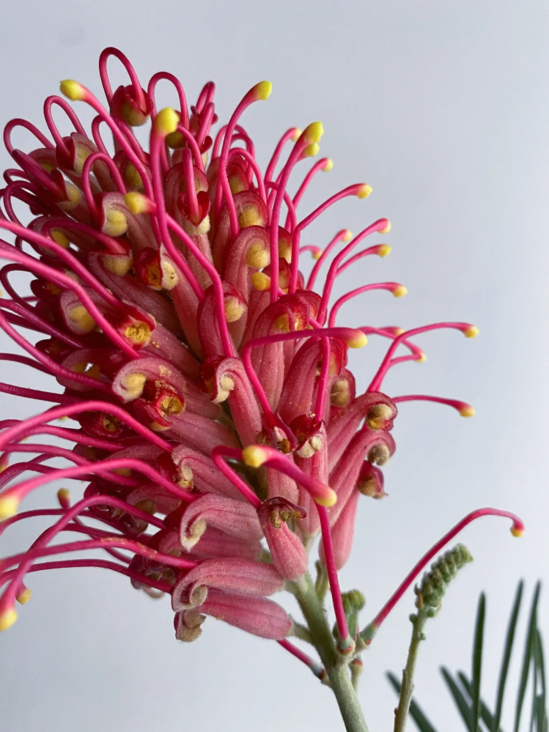 🔴🔴特点:银桦是一个比较小众的花材,原产澳洲,花型和其它山龙眼科的亲戚一样,非常奇特,带有异域风情,像小刷子,完全开放后,配色像夜空里绽放的烟花🎆,非常可爱,叶子和枝干上附有白色的细小绒毛,所以被称为银桦。