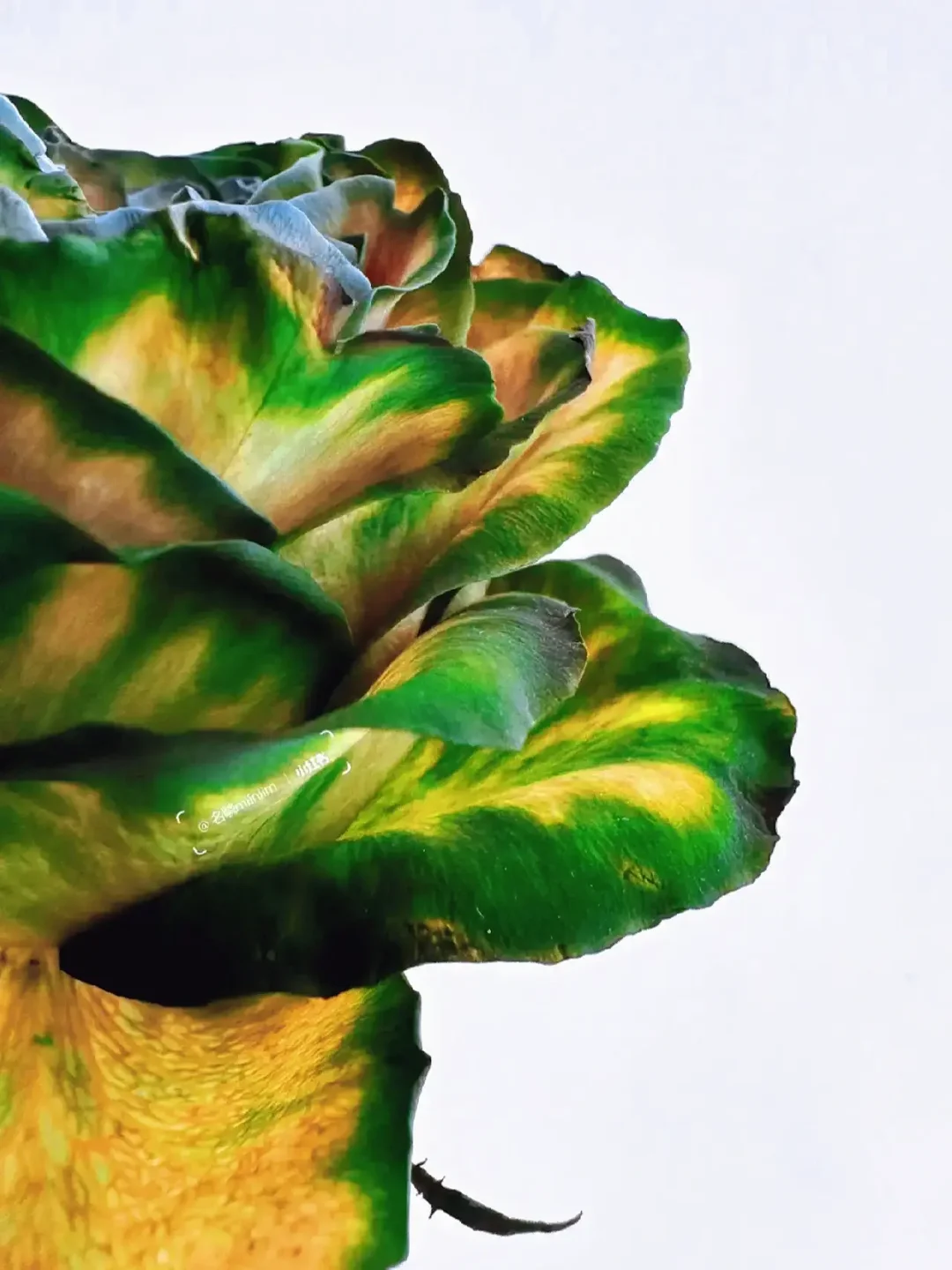 只此青绿 “万水千山揉碎,化为笔下青绿” 鲜花吸色的魅力在于:每一枝花都是独一无二的,即使是同一天、同种染料,效果也不尽相同。 这朵花的颜色并不均匀,层层叠叠的染上石青石绿,却意外的有了水墨感。 山水之色深远静谧,草木复苏又生机勃勃。 祝你春天快乐🌱