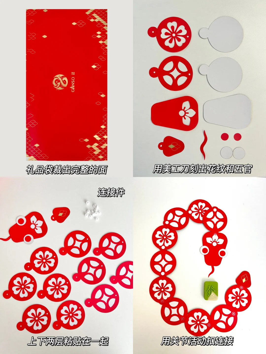 手工用到的材料是刚买的元祖贪吃蛇礼盒的礼品袋,家里有宝宝而且春节年货还没有选好的可以闭眼冲❗️❗️