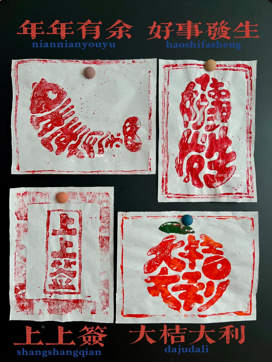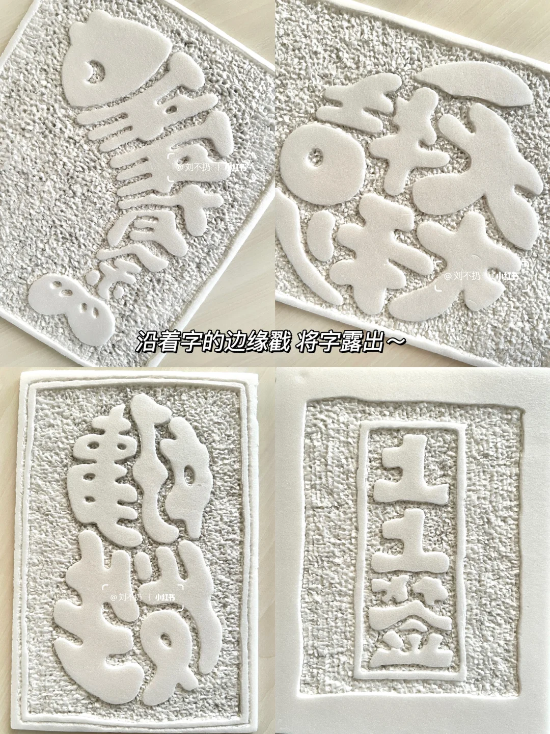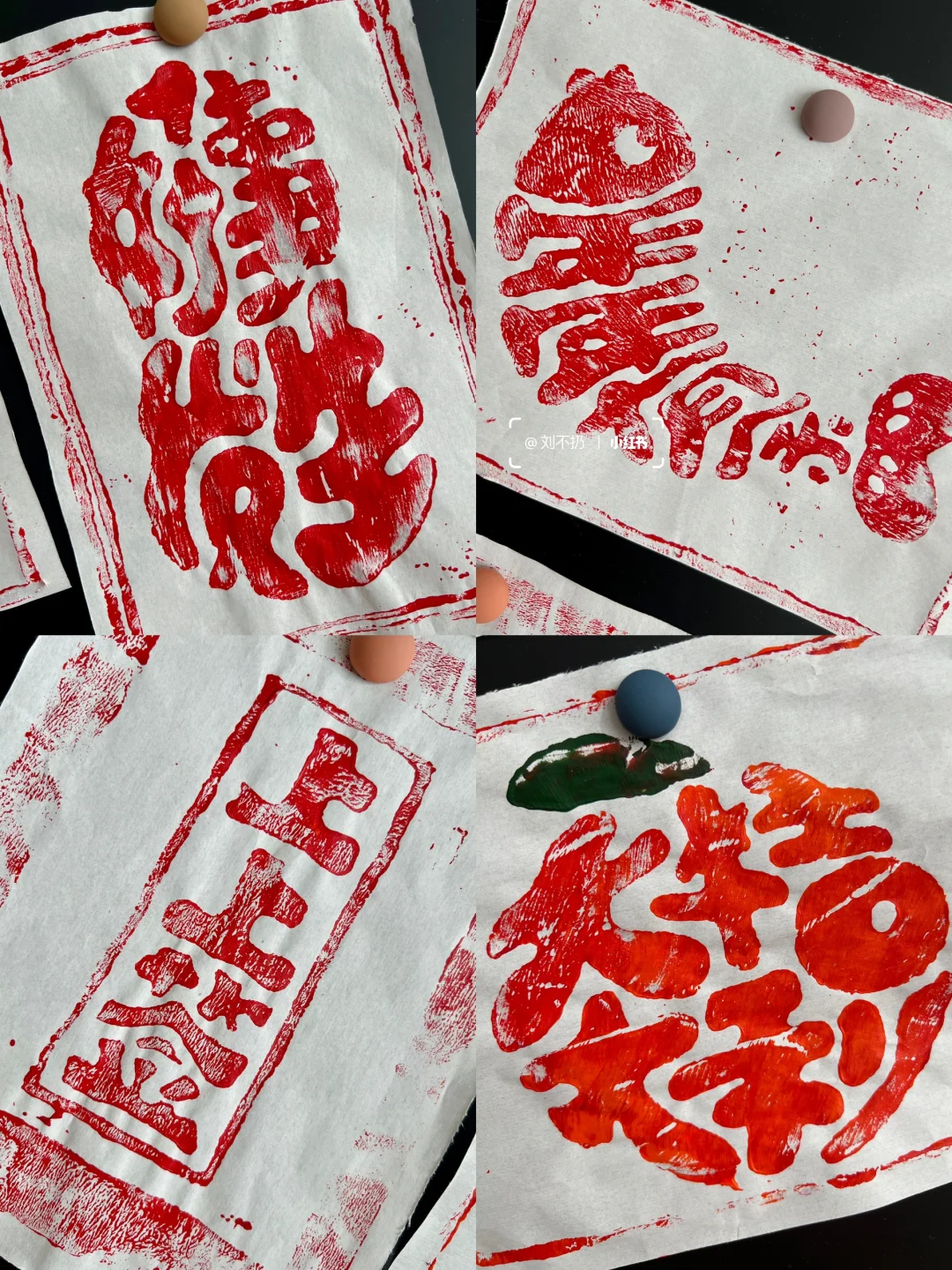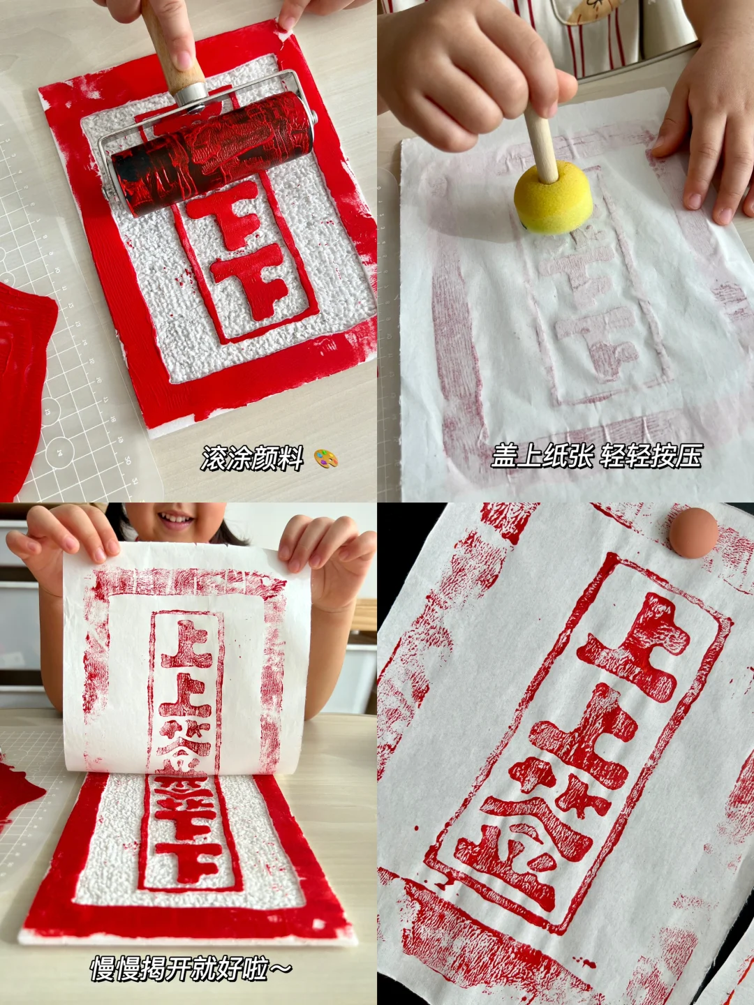 ✂️方法也很简单:用铅笔画上喜欢的图案,将不需要显色的部分戳平 ,如图滚涂颜料、盖上纸张用海绵棒轻轻压平,揭下来就OK了~