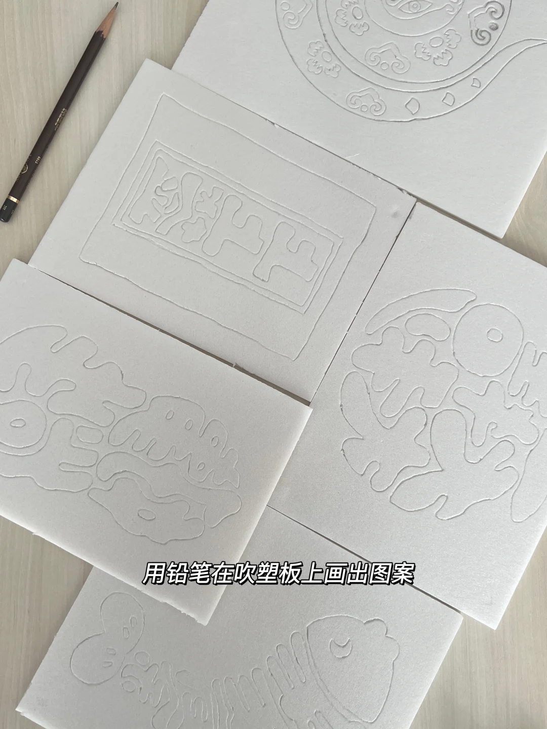 ✂️用到的材料有:吹塑板、铅笔、颜料🎨、滚轮、海绵棒、纸张…