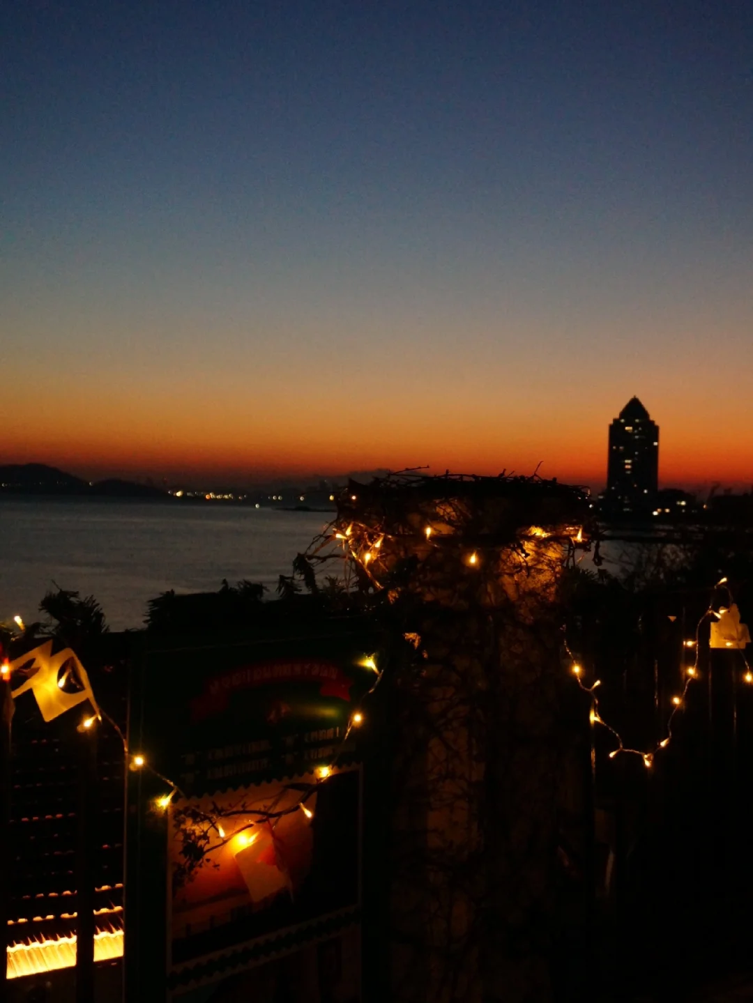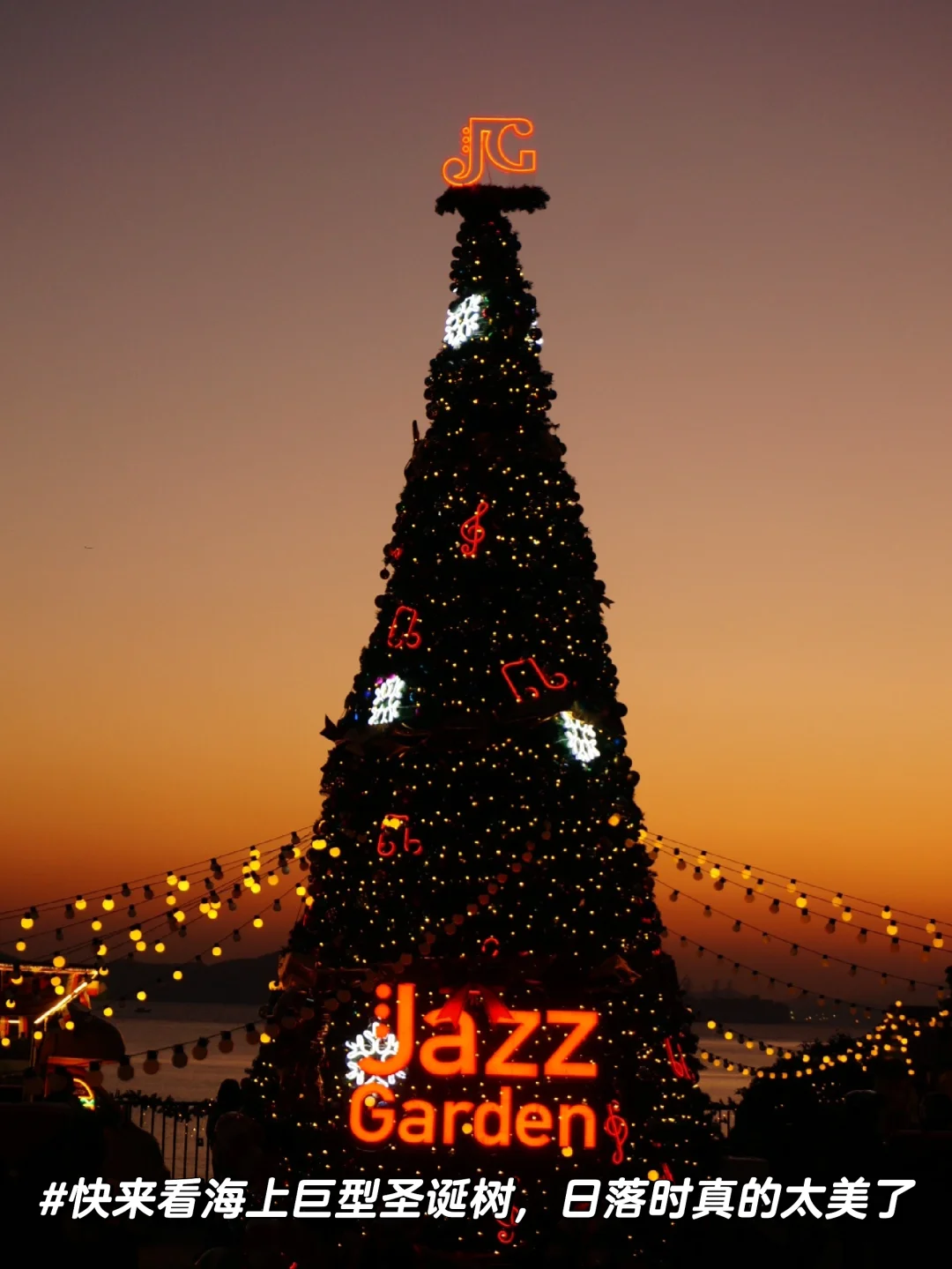 在爵士和巨型圣诞树旁感受醉美的海上日落