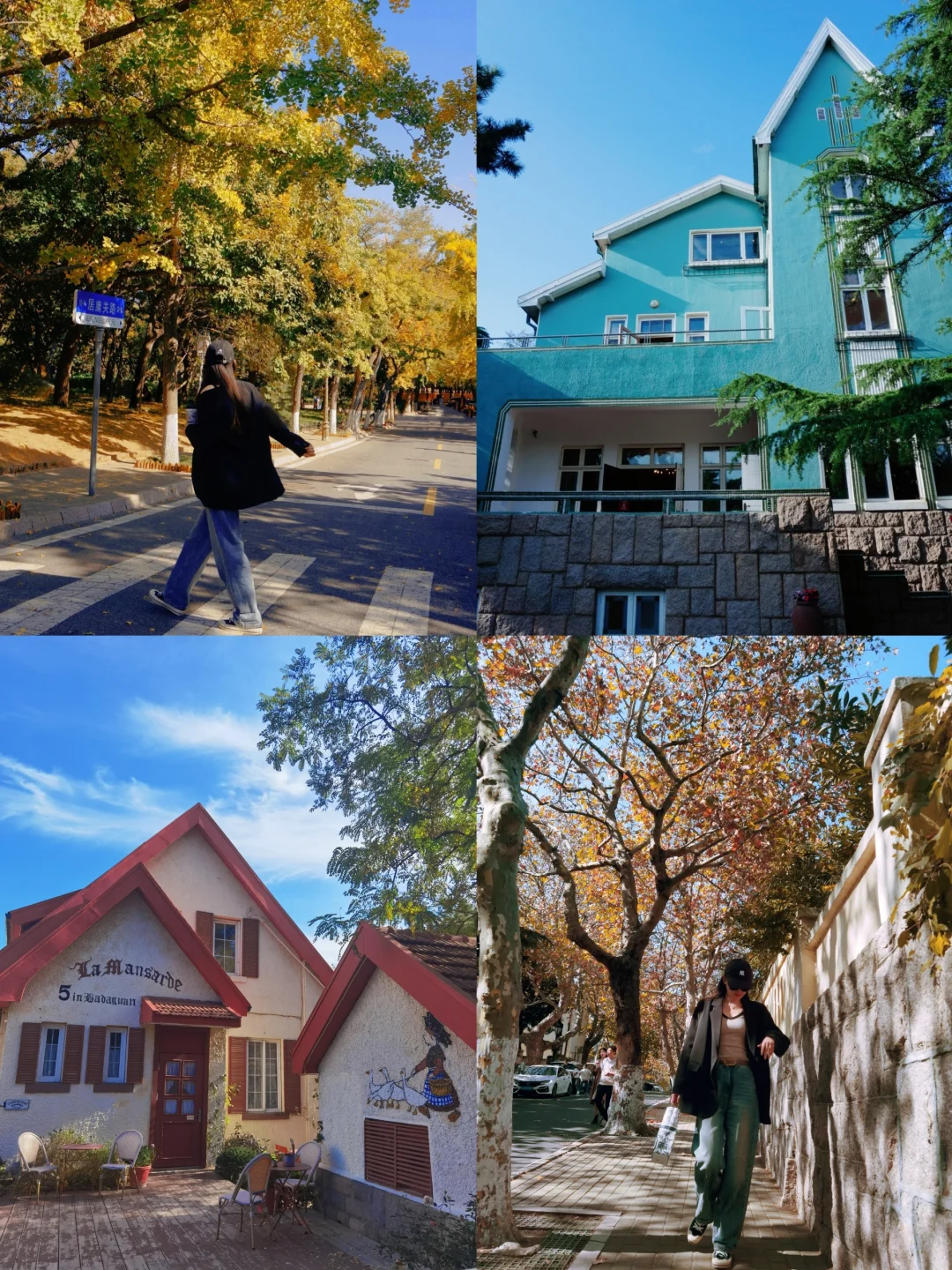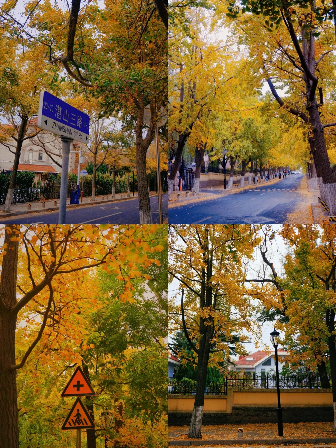 1⃣八大关居庸关路和湛山三路是最佳赏秋地,现在来银杏叶正黄,枫叶正红,满地的落叶浪漫至极~