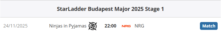 NRG以美洲区第八的排名晋级本届Major,他们将在第一阶段首轮对阵NIP。