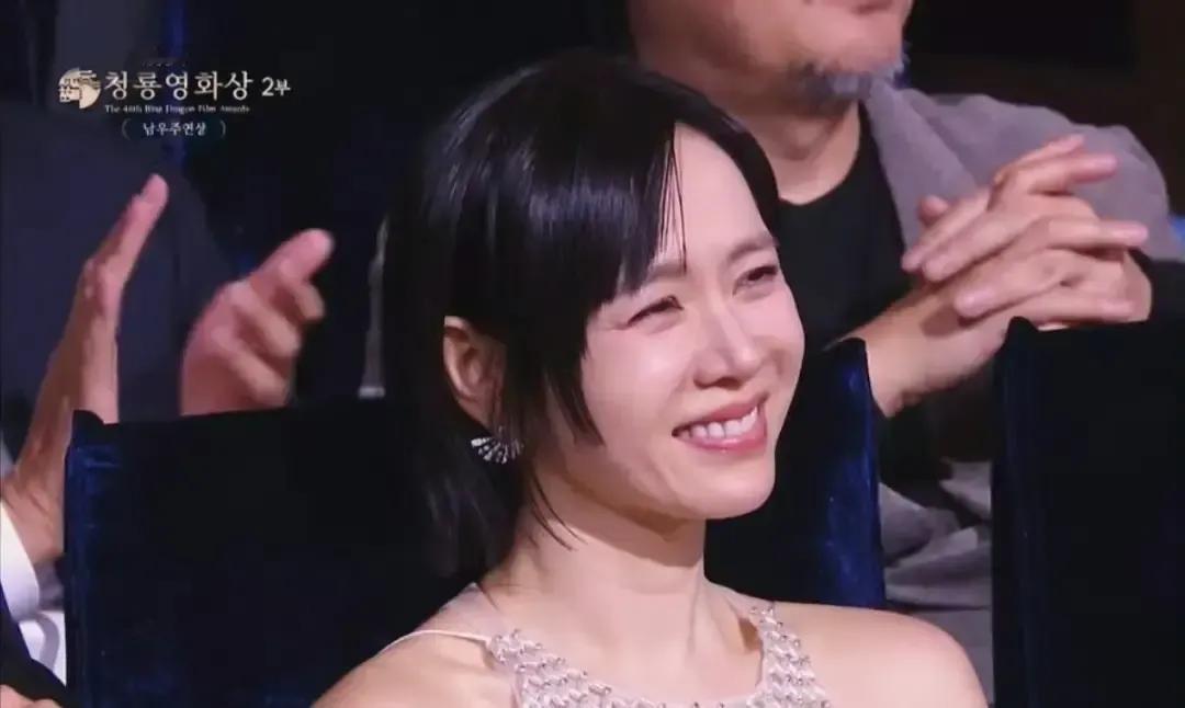 宋慧乔一袭银裙走上红毯,镜头怼脸也挑不出褶子,结果颁奖礼结束,影后奖杯被孙艺珍抱