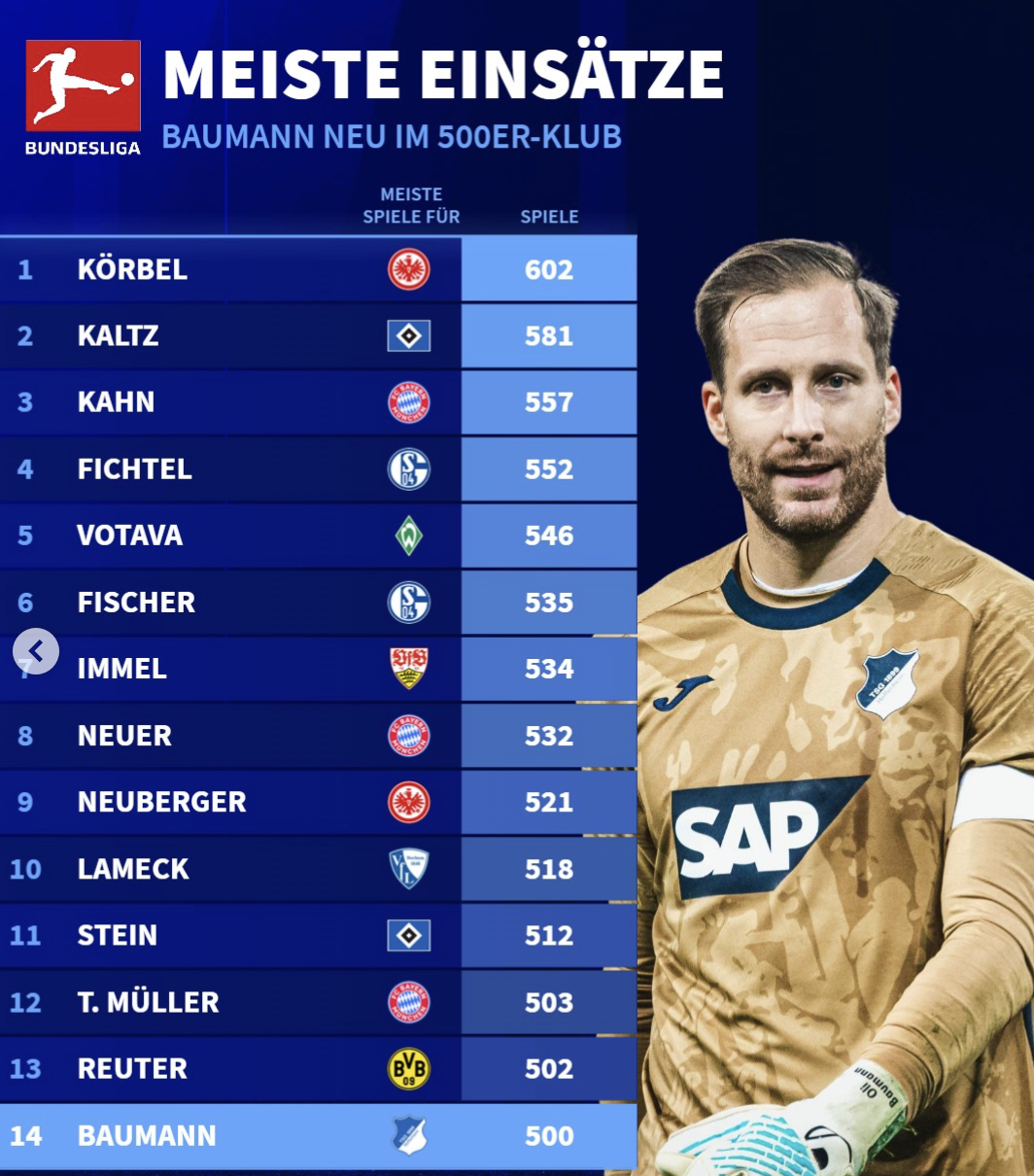 14.鲍曼(霍芬海姆):500场