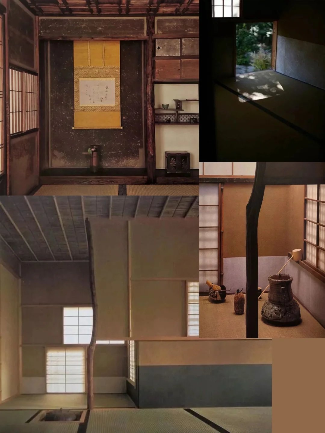 -隔板、壁龛与窗户的位置、形状打破对称感,被自由设计,令点前席、客座明暗对照,妙趣盎然。