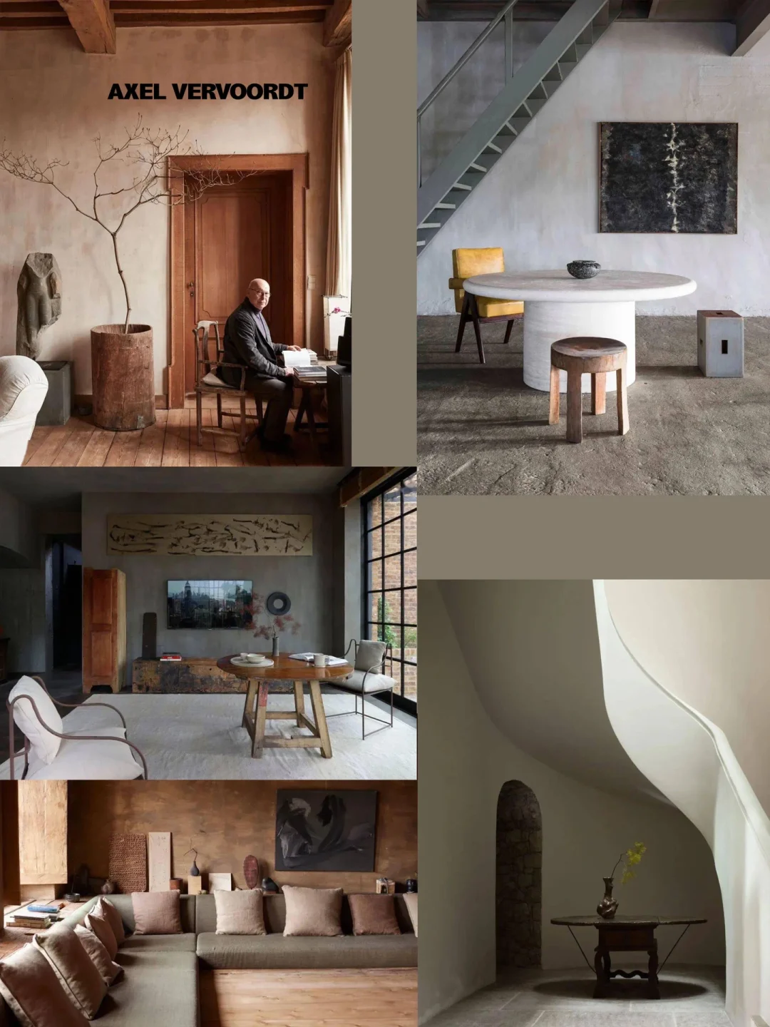 🔹而室内设计,Axel Vervoordt则为其中的佼佼者,素水泥、斑驳墙面、麻布、原木、枯枝、铁艺、编织物,都是他所爱用的设计元素。