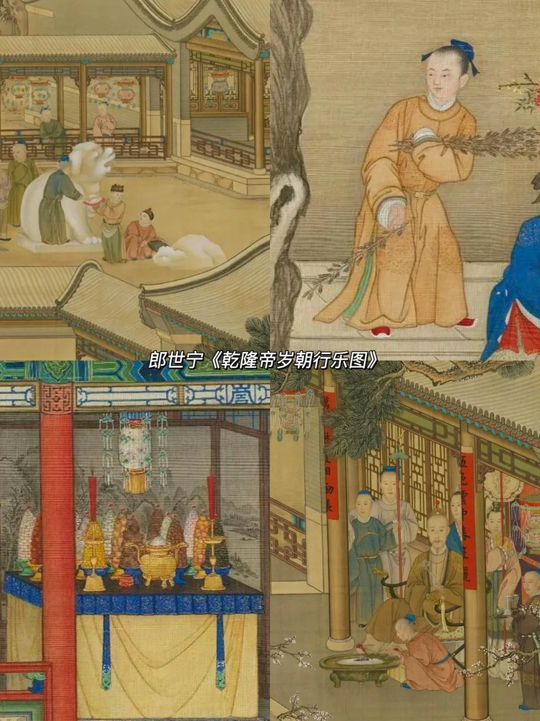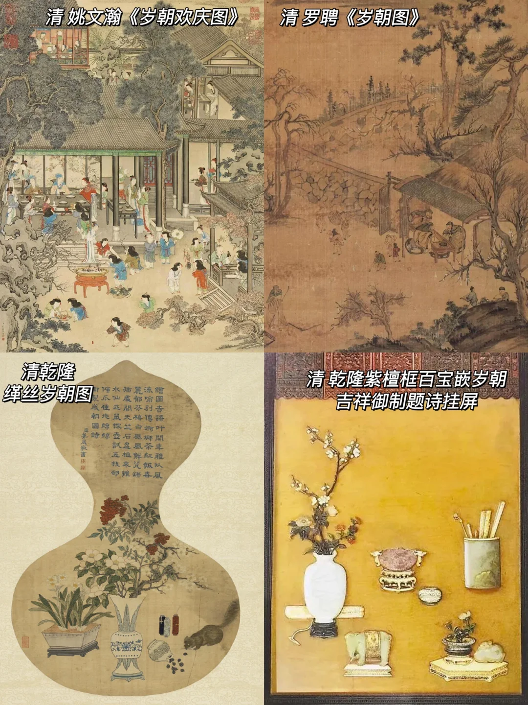 🎋清朝过年就更讲究了,雍正会在元旦子时举行开笔仪式,而乾隆不仅要题字,还会燃玉烛长调,饮屠苏酒,阅《时宪书》,画《岁朝图》。