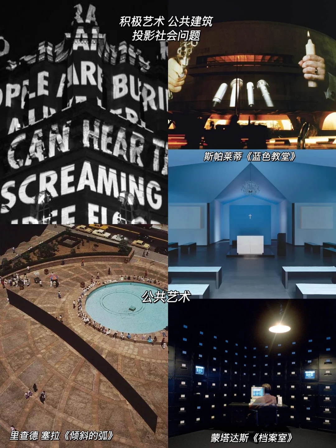 -公共艺术进入广场、高楼、档案室、教堂,以雕塑、霓虹灯、互联网、建筑设计等不同方式存在。