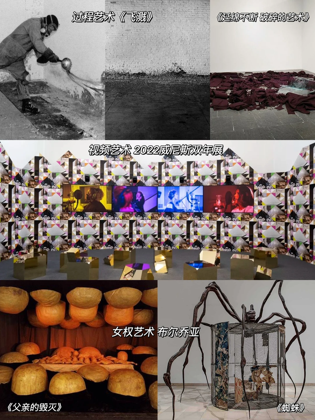 -女权艺术创造巨大雕塑;视频艺术则用光影营造沉浸体验。