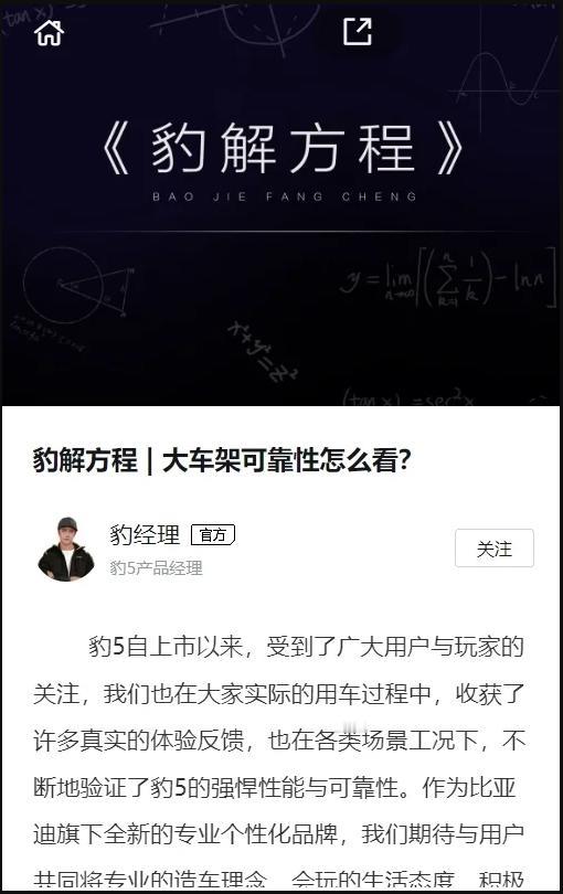 方程豹大梁被扳手掰弯的事情,法院判决了最近比亚迪法务部发布公告披露了一个名为“王悟空说车”的媒体的判决,就说了赔31.38万,除此之外就没有更多细节了。我说实话,我根本不知道王悟空说车是谁。看起来好像是比亚迪抓了个“小媒体”在“树典型”一样。但你要提一下“方程豹大梁+扳手”这俩关键词,那绝大多数人就知道是咋回事了。我解释一下:有个博主使用扳手和老虎钳两种工具,针对方程豹豹5的大梁边缘和下摆臂等位置进行来回掰动,最终大梁边缘发生了明显的形变,下摆臂打孔边缘位置被直接掰烂。与此同时,该车主还在视频中向大家展示了自家的改装加强件,并表示自家的加强件在重量与原厂件相同的前提下刚性更强,拍此视频是出于自己的良心,而并非是要宣传自家的改装加强件,他已经对方程豹豹5失去了信心。这一事件一度是热搜榜前列,虽然方程豹官方对此进行了回应,也有自称是首钢员工的网友在短视频平台上透露,比亚迪公司所采用的大梁钢是由首钢生产的S610L和S710L两种钢材。这两种钢材用在方程豹上,其实高于国家的标准。而且事后有不少方程豹豹5车主,采用了相同的方式测试豹5下摆臂的硬度,然而尽管他们在掰扳手时整个人双脚都已经悬空,但方程豹豹5的下摆臂也没有发生明显的形变,“测试结果”形成了鲜明的对比。——这是一个过去方程豹品牌身上全国知名的案例,很多人吃了瓜就结束了,事情的真假最终其实没有太多人关心了,都去吃下一轮流量了。从比亚迪的角度而言,有了最终的判决结果后,也应该稍微“旧事重提”一下,让很多平时不关注汽车新闻的人知道“法院判决了,方程豹大梁有问题的新闻,是假的”这个细节对于法务部不重要,但对于比亚迪品牌,以及公关来说,我认为还可以做的更好。虽然比亚迪一直在提“技术竞争才是良性之争”的概念,似乎不屑于去解释一些技术之外的事情,但面对一些黑流量,也需要更细致的回应才合适。总结:我个人觉得各个车企的公关部门在公布一些起诉动作,以及过往案件判决结果时,不妨跟自己企业的公关部先对接一下,把事情的前因后果都公布出来,讲明白。因为很多时候,你光公布谁谁谁被起诉了,赔了多少钱,看似很有威慑力,但绝大多数读者是没有心思去按照你公布的“线索”,去回溯相关事件的。这就意味着一些过往的“新闻”,在很多人眼里并没有得到解决。通过公布细节和前因后果,也一定程度上可以防止车企法务部的行动“有意扩大化”。因为公布细节后,必然会引起公众自发去“二次监督”,但凡某个车企公布的细节和事实稍有出入而被公众挖出来,就会引起反噬。当所有的细节都暴露在公众面前时,很多事情的答案也就有了。