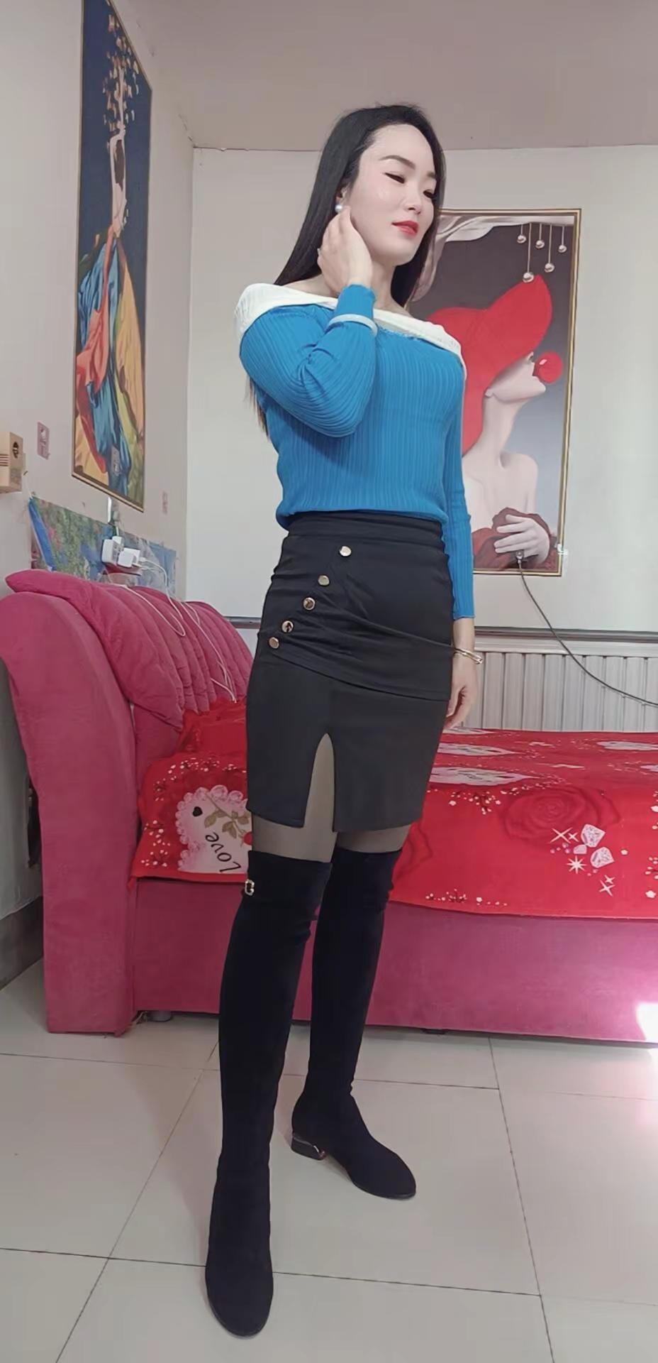 柜里全是黑白色衣服,这次换个蓝色,好看不?