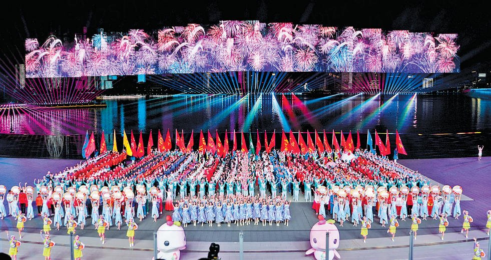 这是11月21日拍摄的闭幕式现场。当日,第十五届全国运动会闭幕式在广东深圳前海欢乐剧场举行。新华社记者夏一方摄