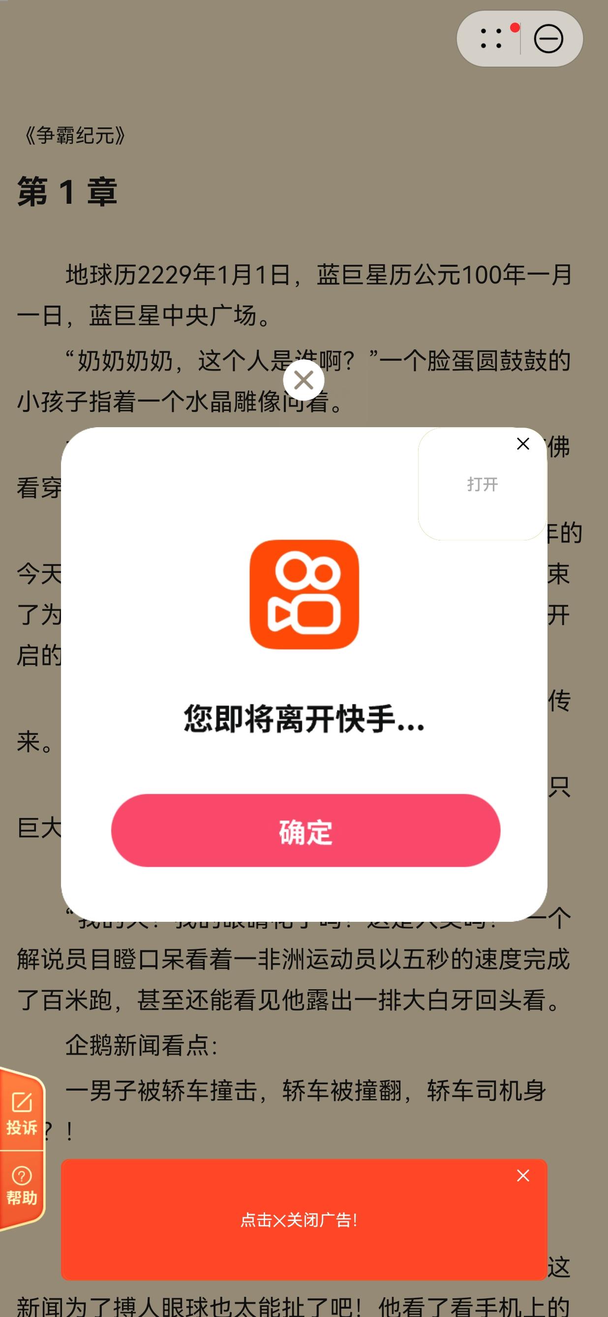 不仅仅是“好奇害死猫”,我在网上浏览一样中招 明明是在浏览一篇《安徽夫妻在家开饭馆,老板娘一脸“旺夫相”,客人都为她而来》的文章,看到文末的页面有一组集体照,我误以为与文章中的主人公相关,是想看一看“一睹芳容”,没想到这一想、手指一点便“中招”了,根本没办法正常退出。 显示“你即将离开快手”,点击“确定”无效! “显示你是否退出应用返回手机桌面”,点击“立即退出”无效! 显示“正在进入应用…是否退出”,点击“确定”无效! 显示“是否要离开本页面”,点击“确认”无效! 明明根据《互联网广告管理办法》第十条:以弹出等形式发布互联网广告,广告主、广告发布者应当显著标明关闭标志,确保一键关闭,不得有下列情形: 第二款:关闭标志虚假、不可清晰辨识或者难以定位等,为关闭广告设置障碍; 第三款:关闭广告须经两次以上点击; 法律在这里好像根本没用!莫名其妙。